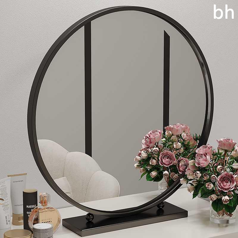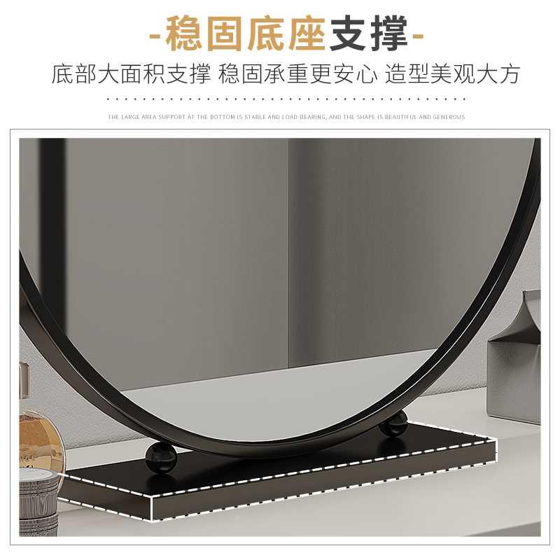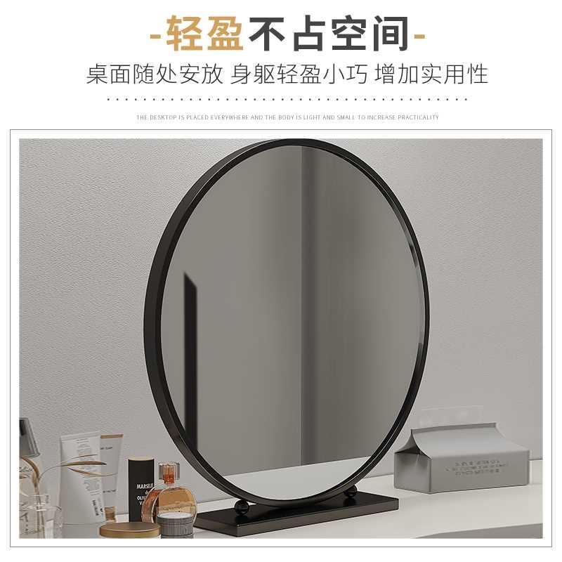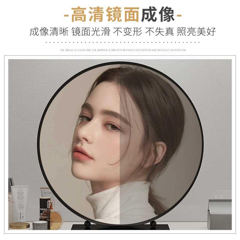 简约台式化妆镜圆形梳桌面妆镜卧室学生宿舍铁艺大镜子梳妆台新品