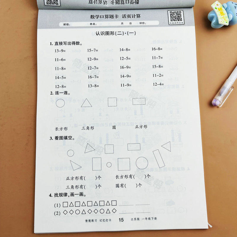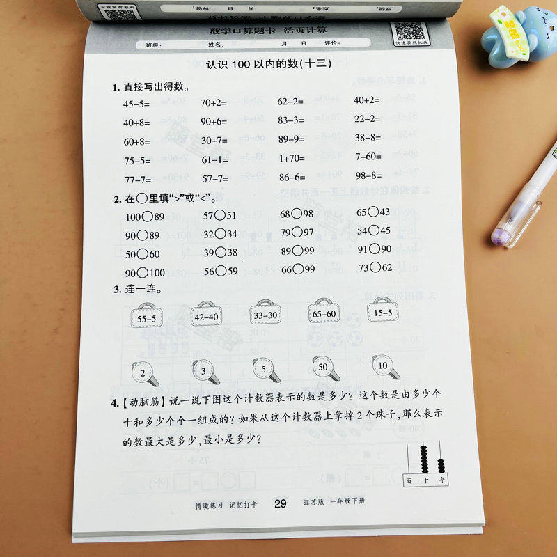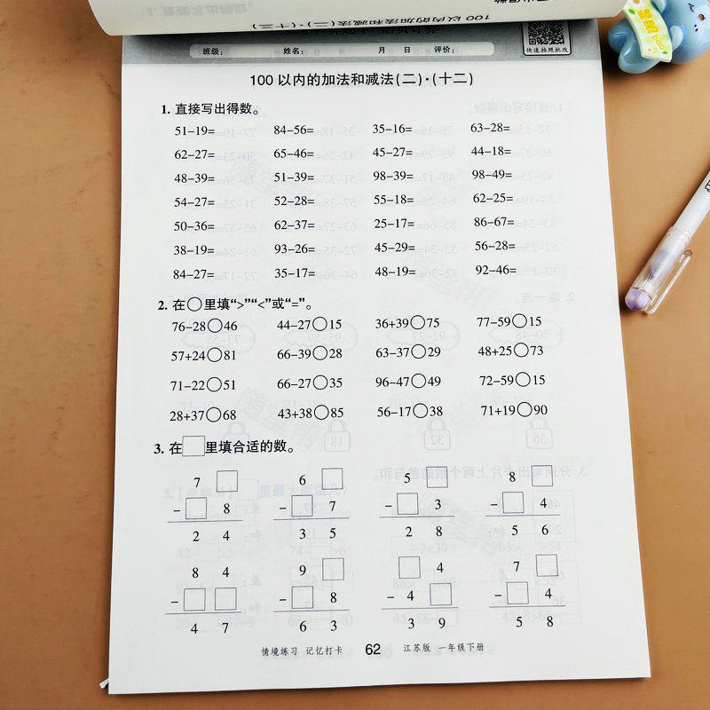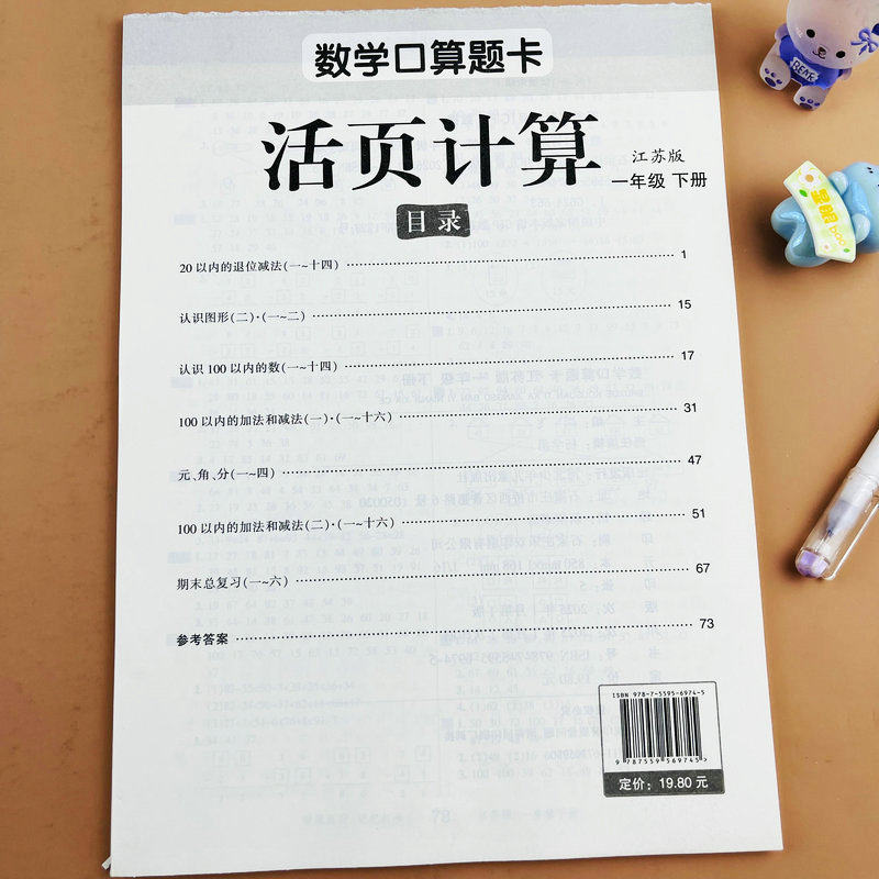 【随堂帮】苏教版一年级下册数学口算题卡活页计算江苏版课本同步练习册每天10分钟一课一练20以内的退位减法元角分100以内加减法