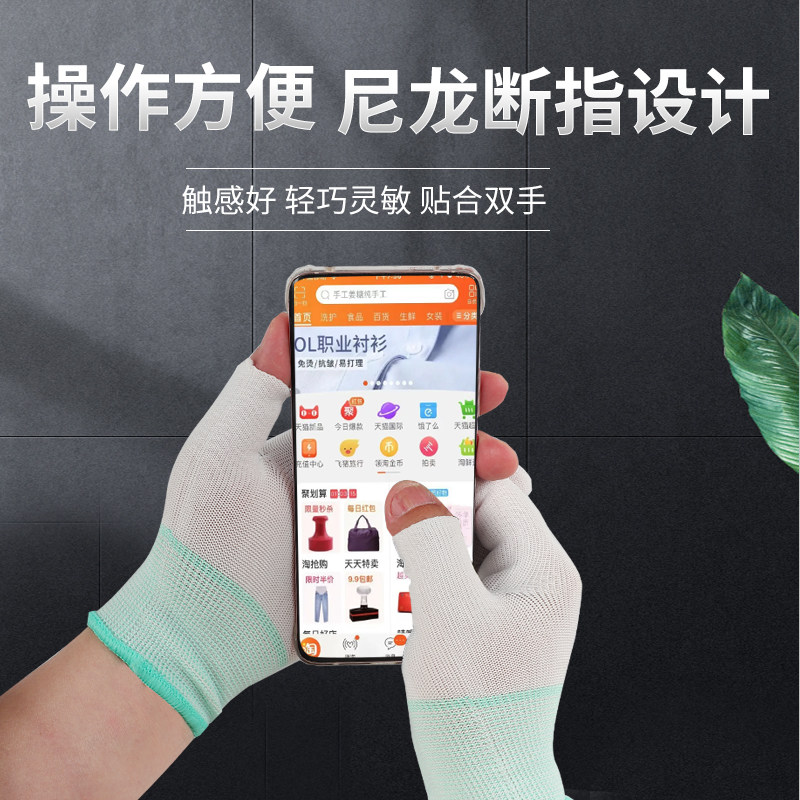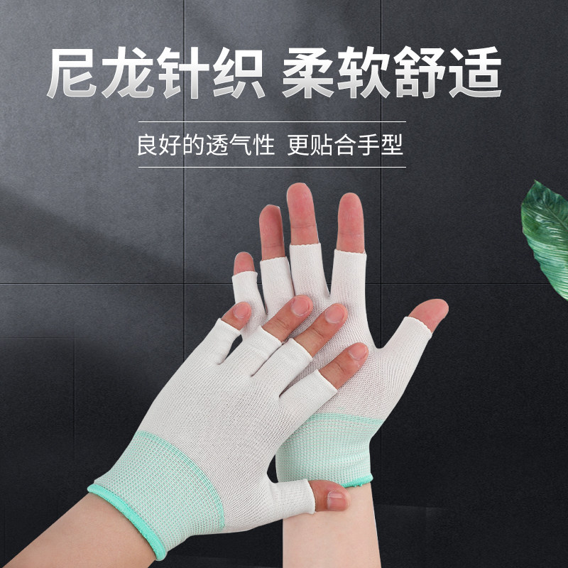尼龙手套薄款劳保耐磨工作夏季漏指半指白色女男夏季劳动干活薄