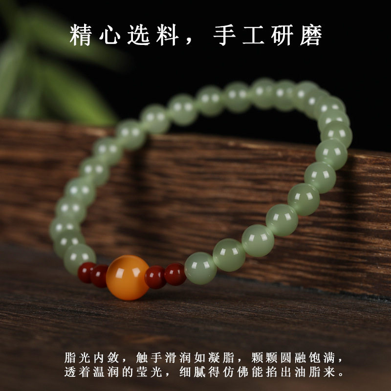 唐今玉原创2025年国风和田玉蜜蜡手串手链串珠女单圈手链简约手串