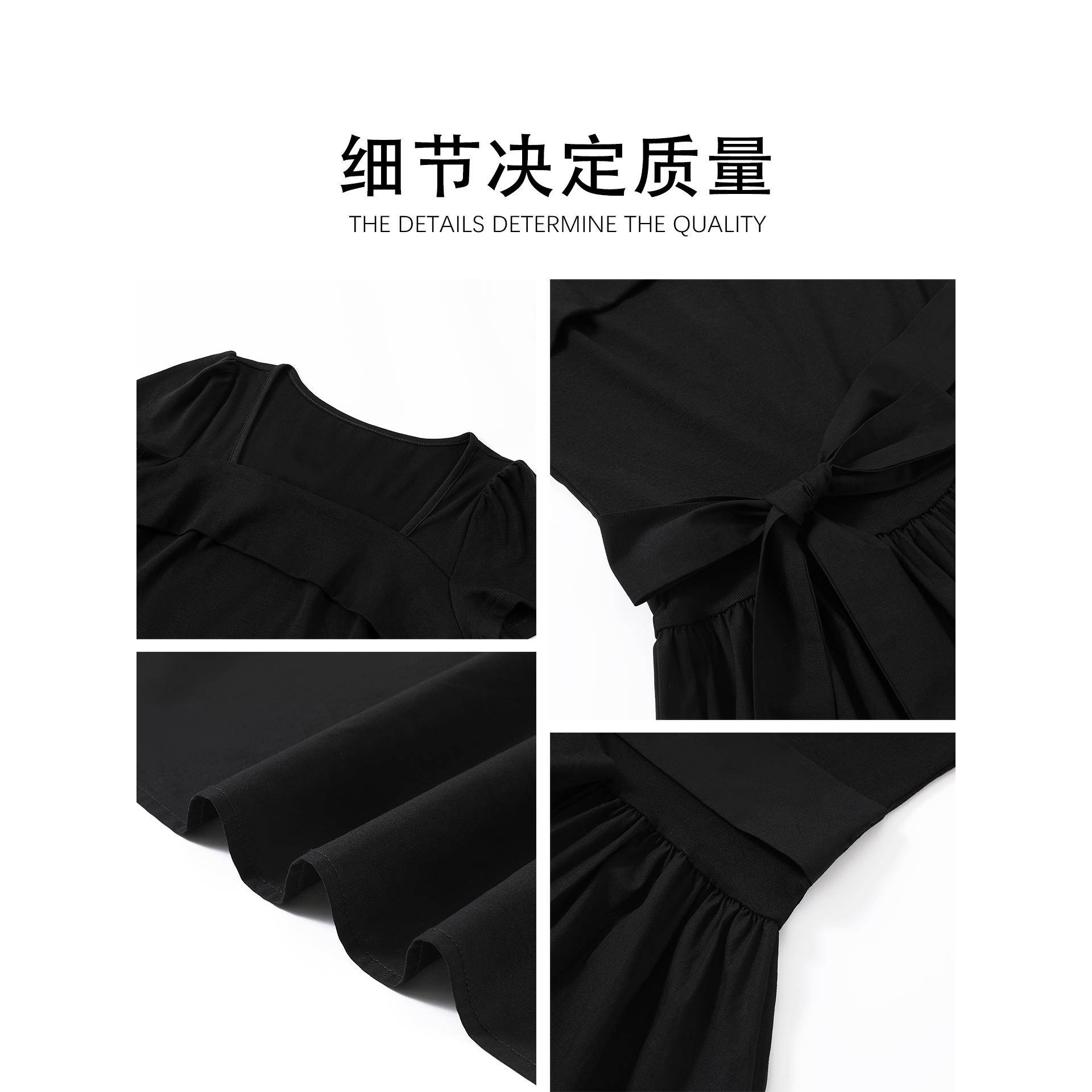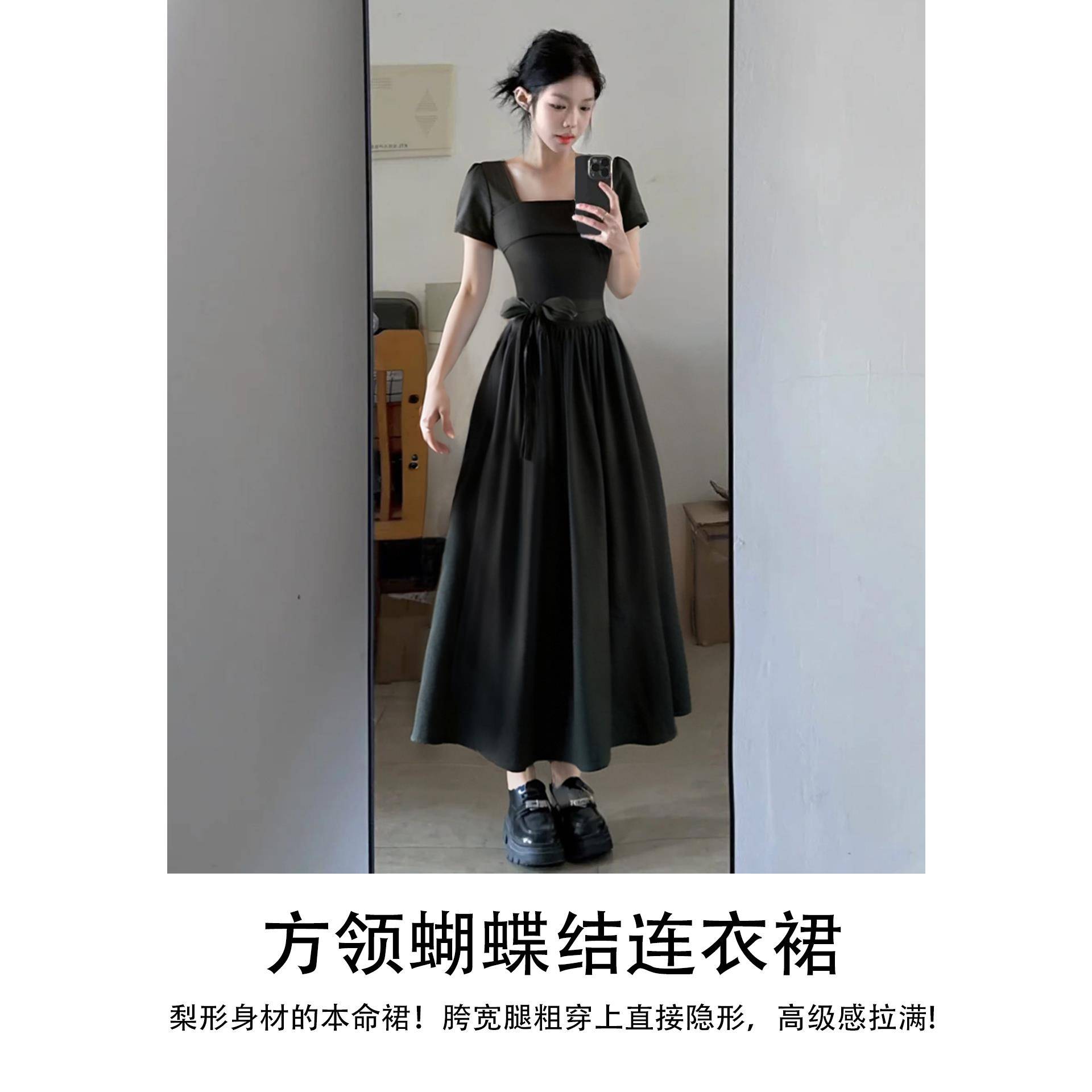 黑色连衣裙女夏掐腰a字夏日巨好看绝美长款小裙子夏天小个子长裙