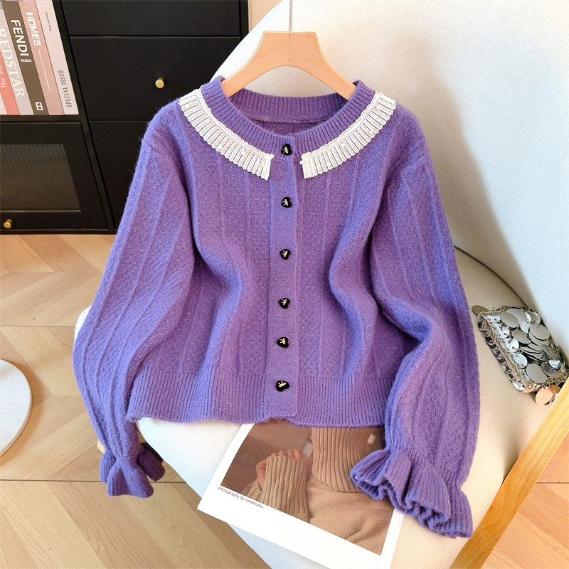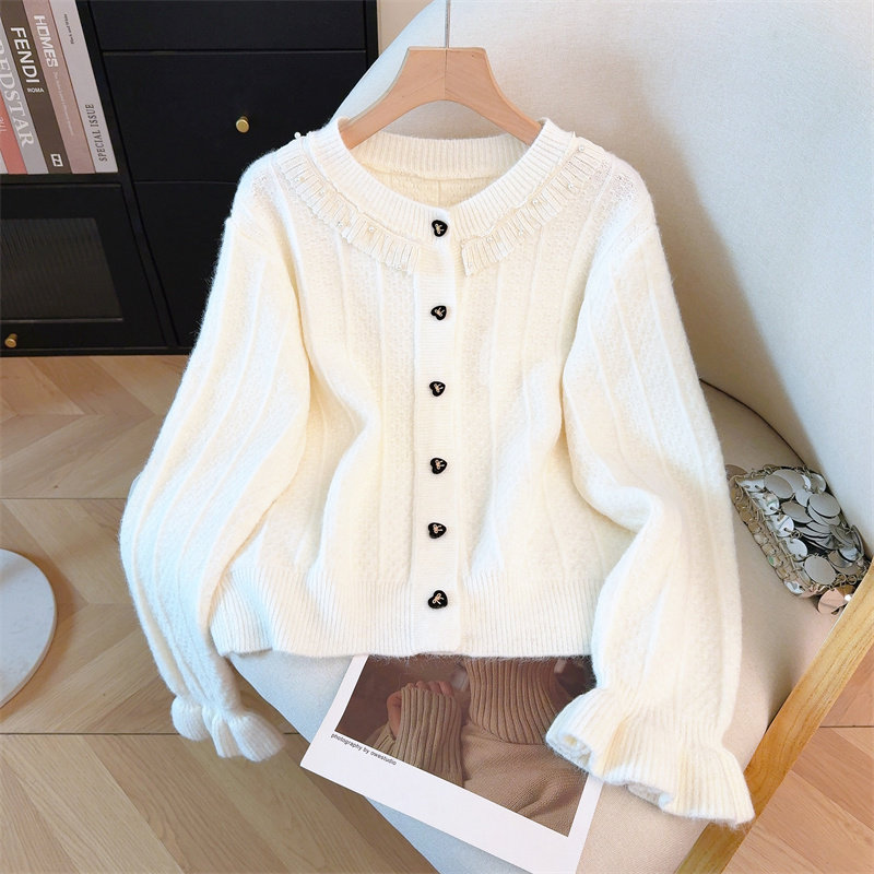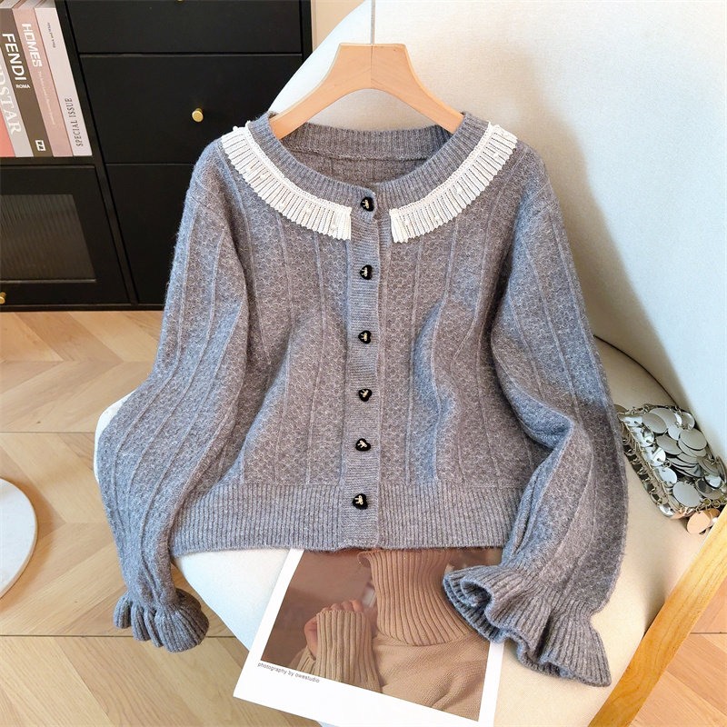 包邮包邮温柔风花边领毛衣外套女新款设计感显瘦针织开衫大码2026