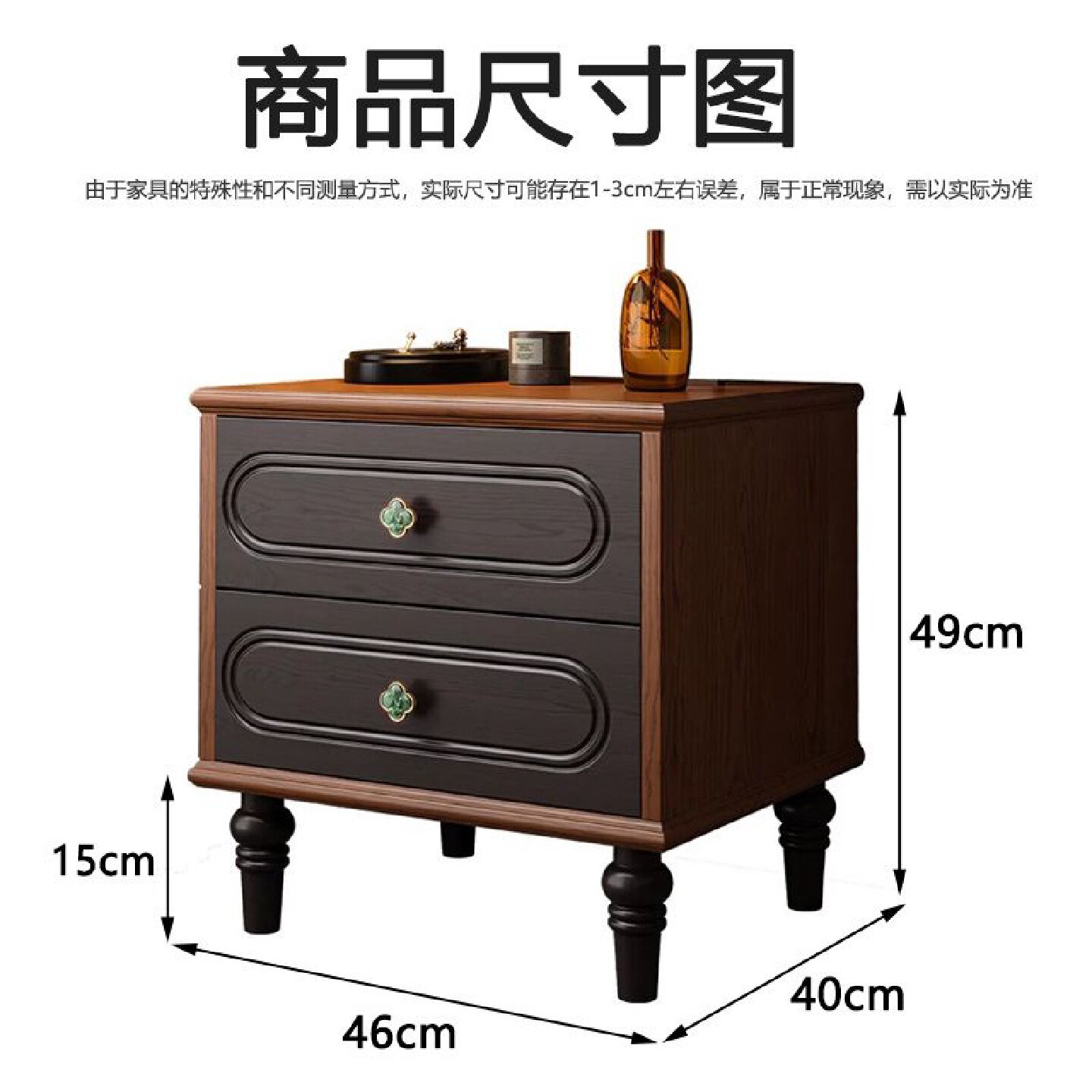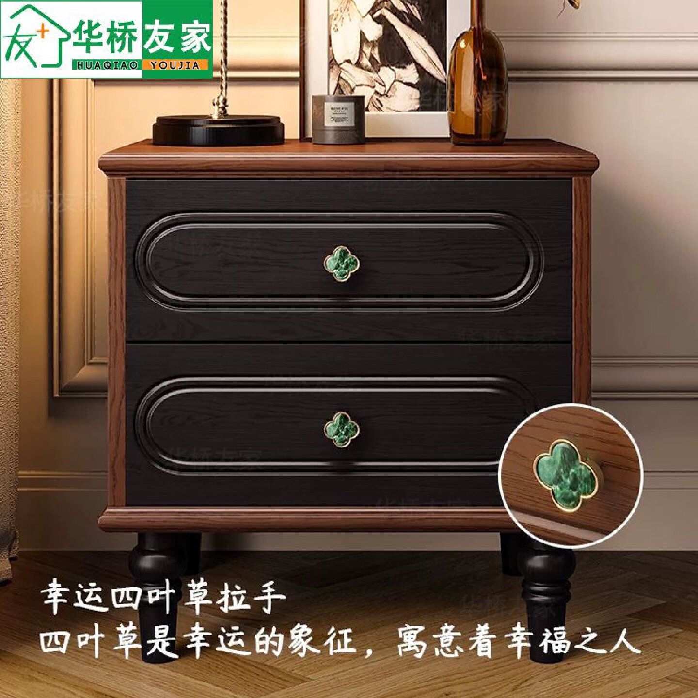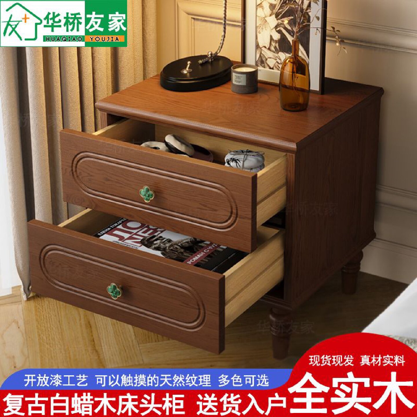 白蜡木床头柜家用卧室2025爆款纯实木法式床头柜中古风高级感黑色