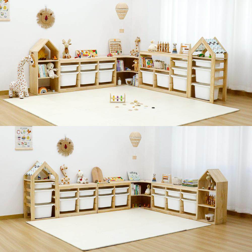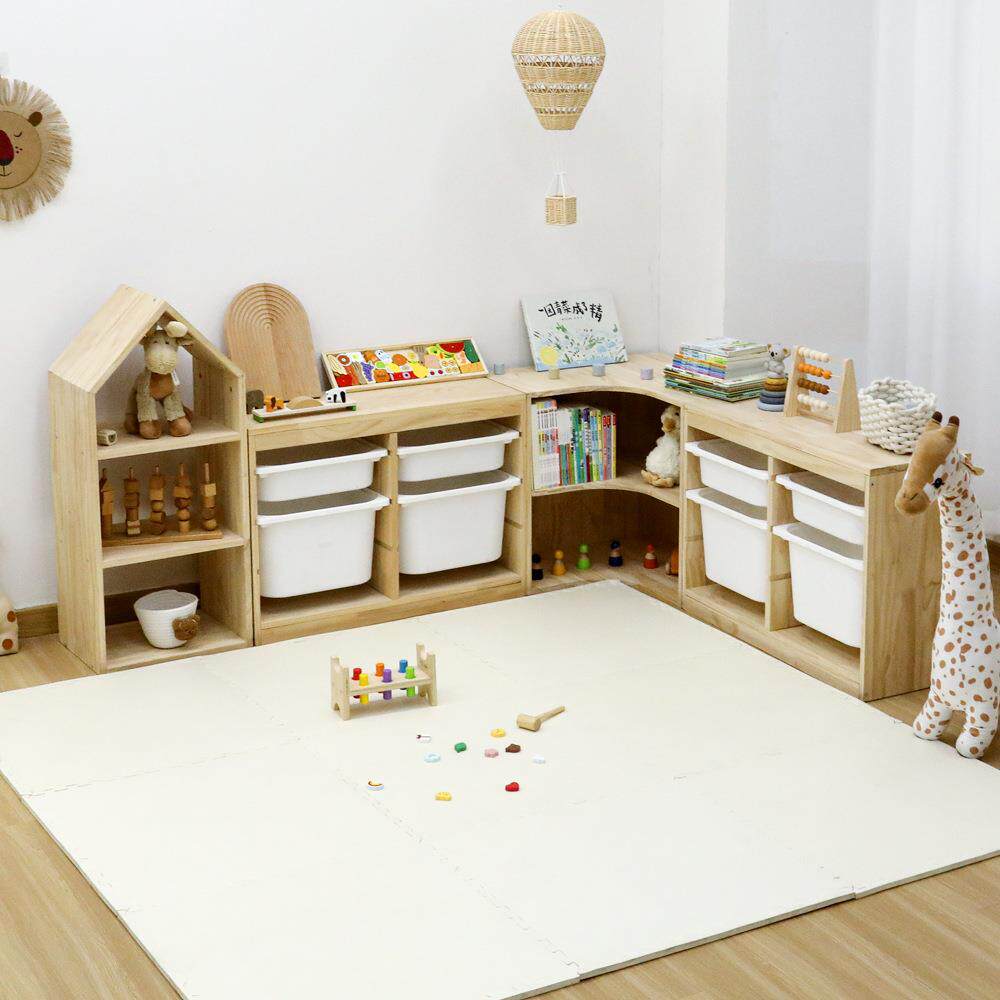 蒙氏儿童房玩具收纳柜自由组合转角柜绘本教具多层松木架子大容量