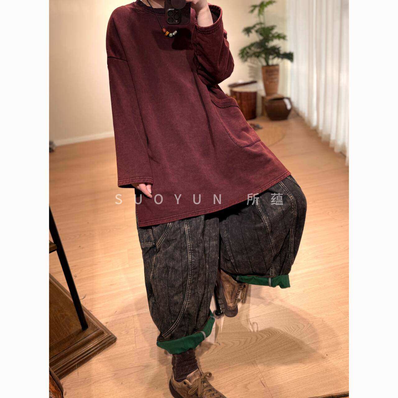所蕴冬装新款纯棉加绒套头圆领长袖卫衣亲肤保暖时尚百搭上衣女S1