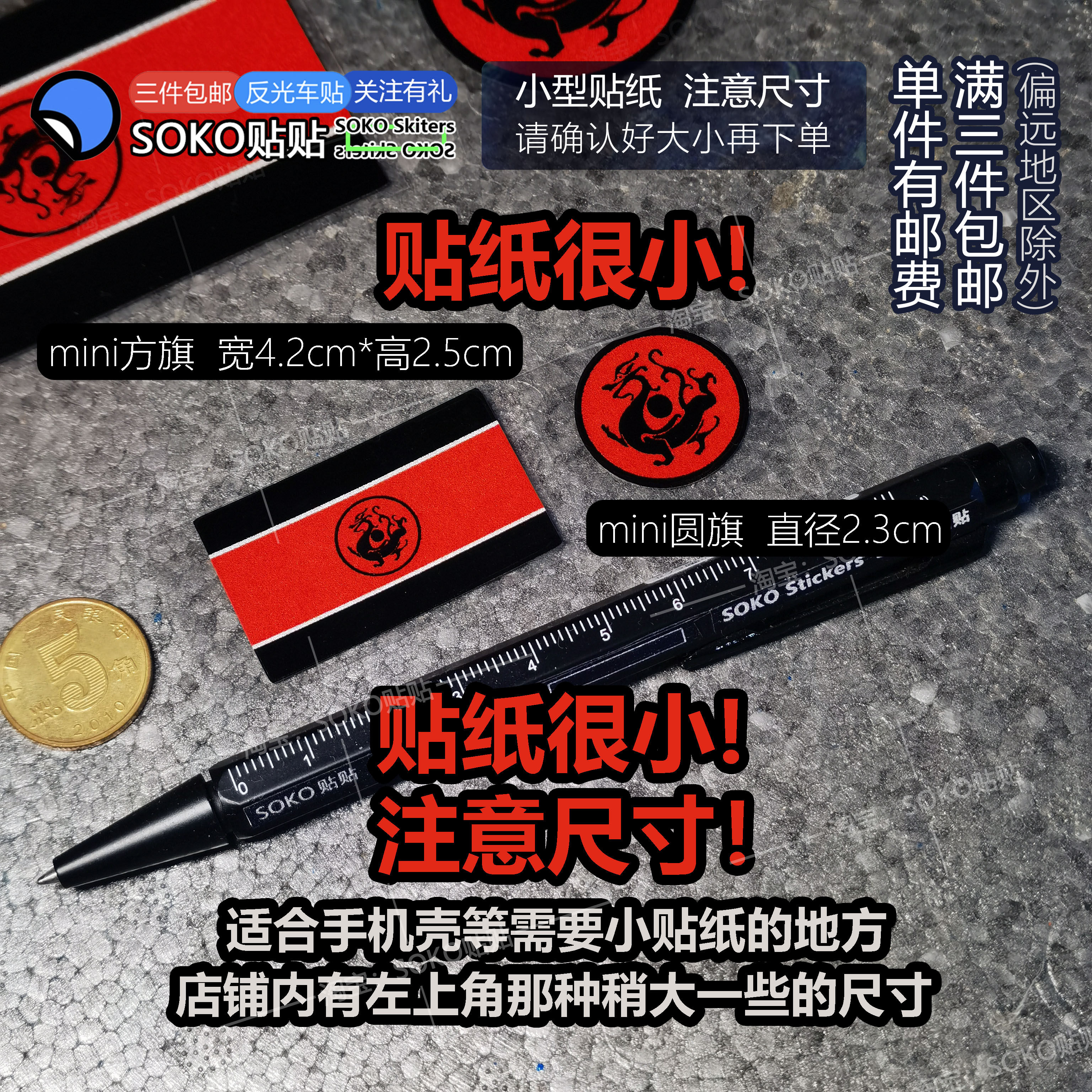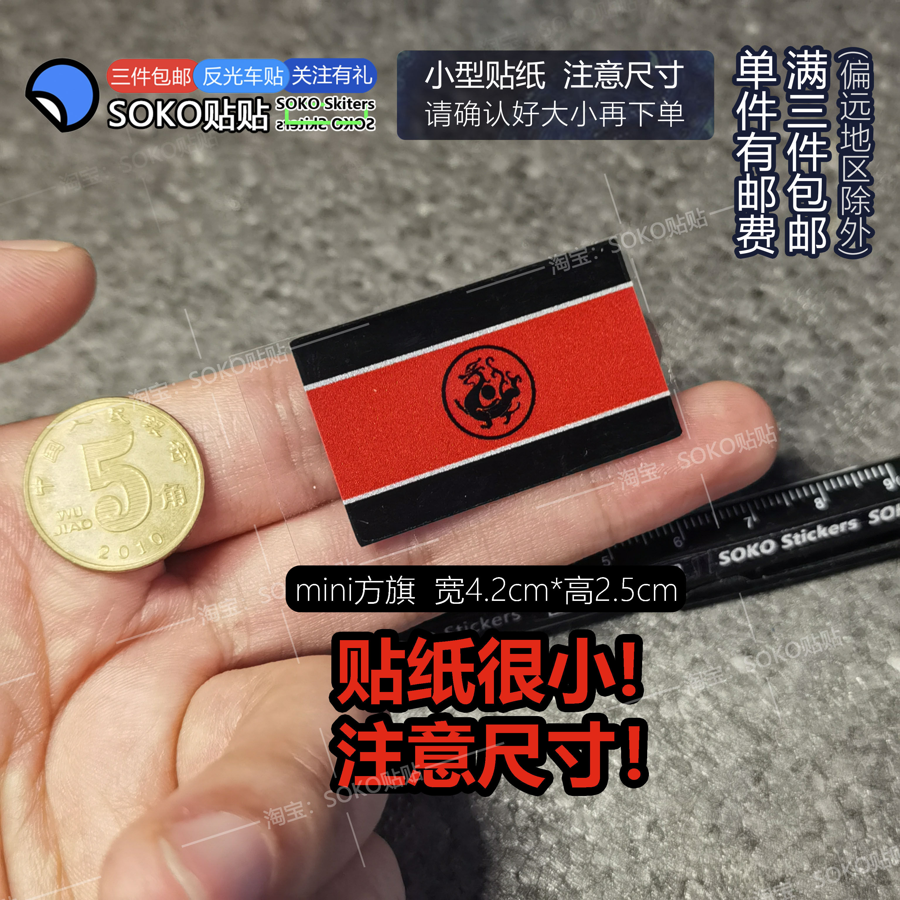 SOKO贴贴 超小号mini迷你大汉龙旗黑龙旗历史文创反光贴纸手机壳