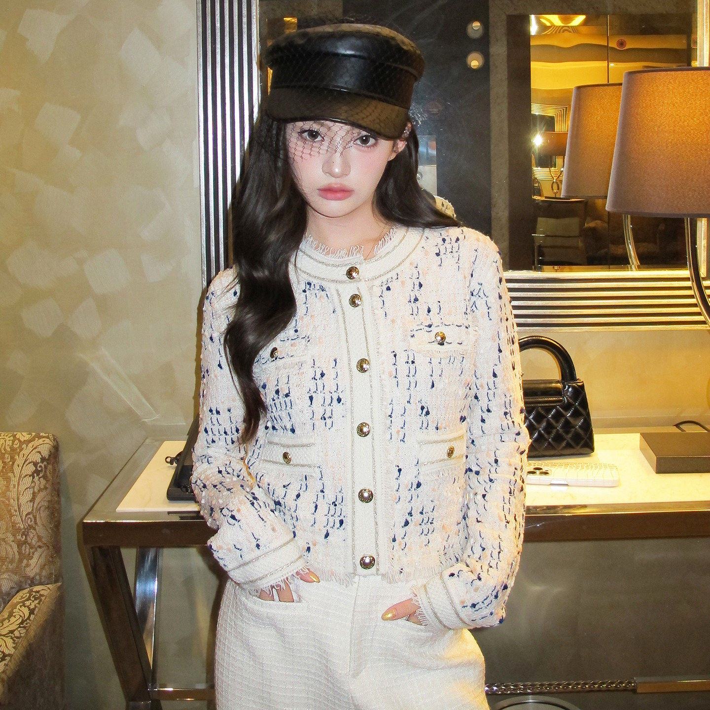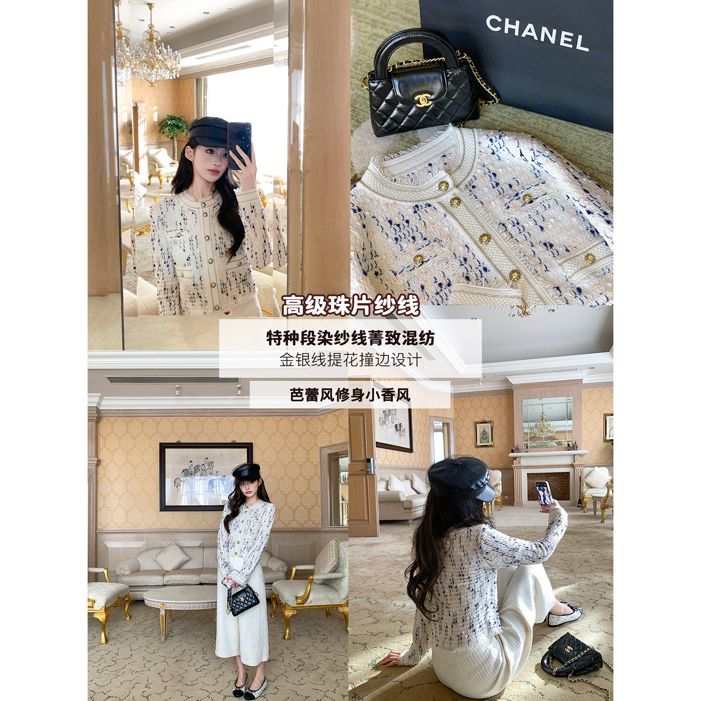 地球店贵气富家千金穿搭针织开衫短上衣高级法式小香风外套女装冬