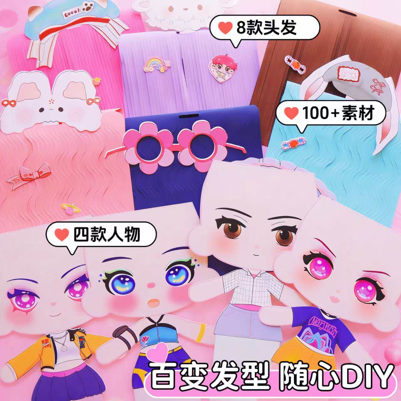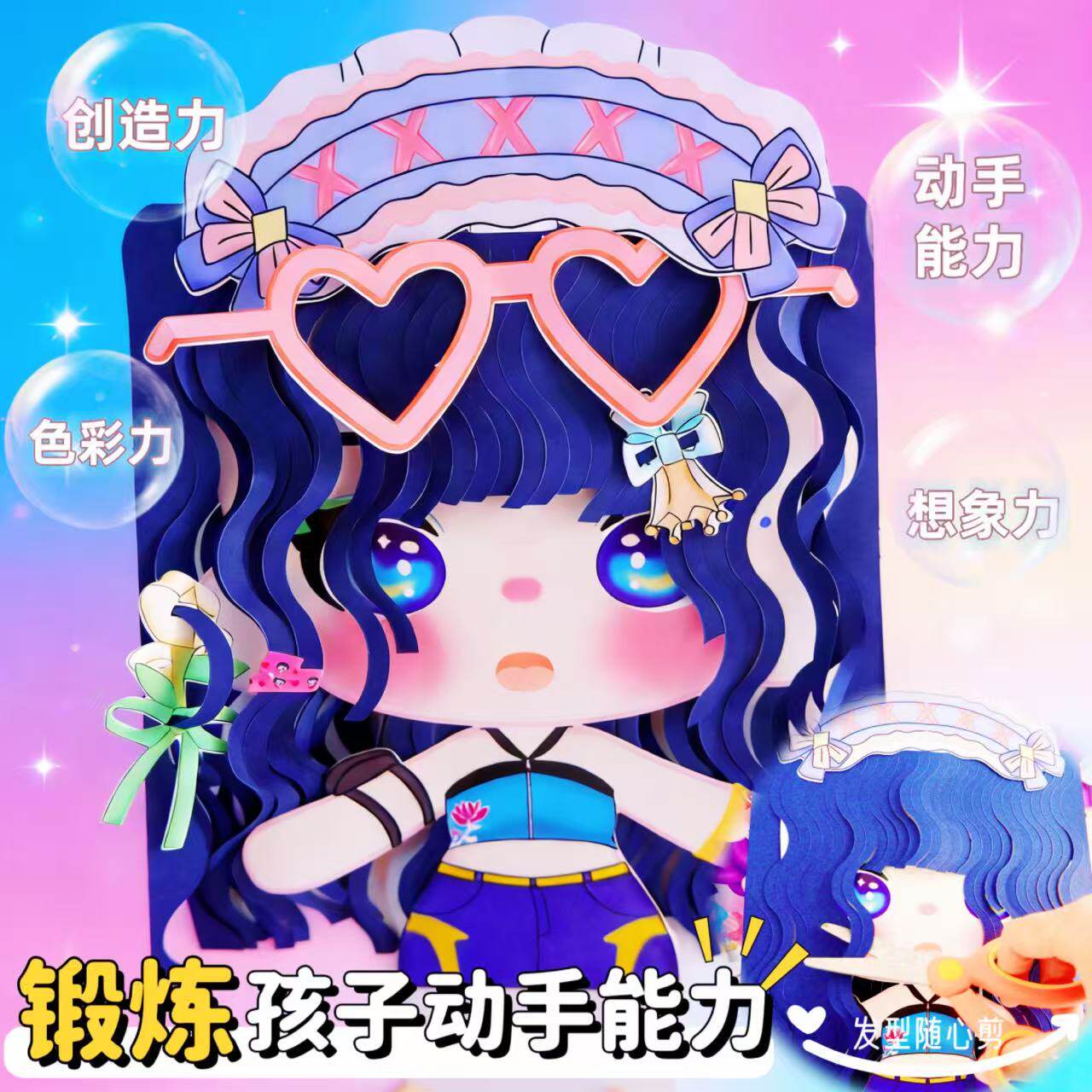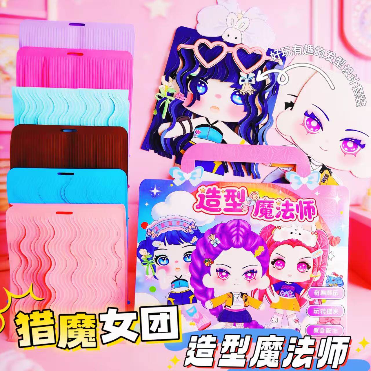 猎魔女团造型魔发师贴纸儿童理发师手工DIY剪纸女孩发饰套装玩具