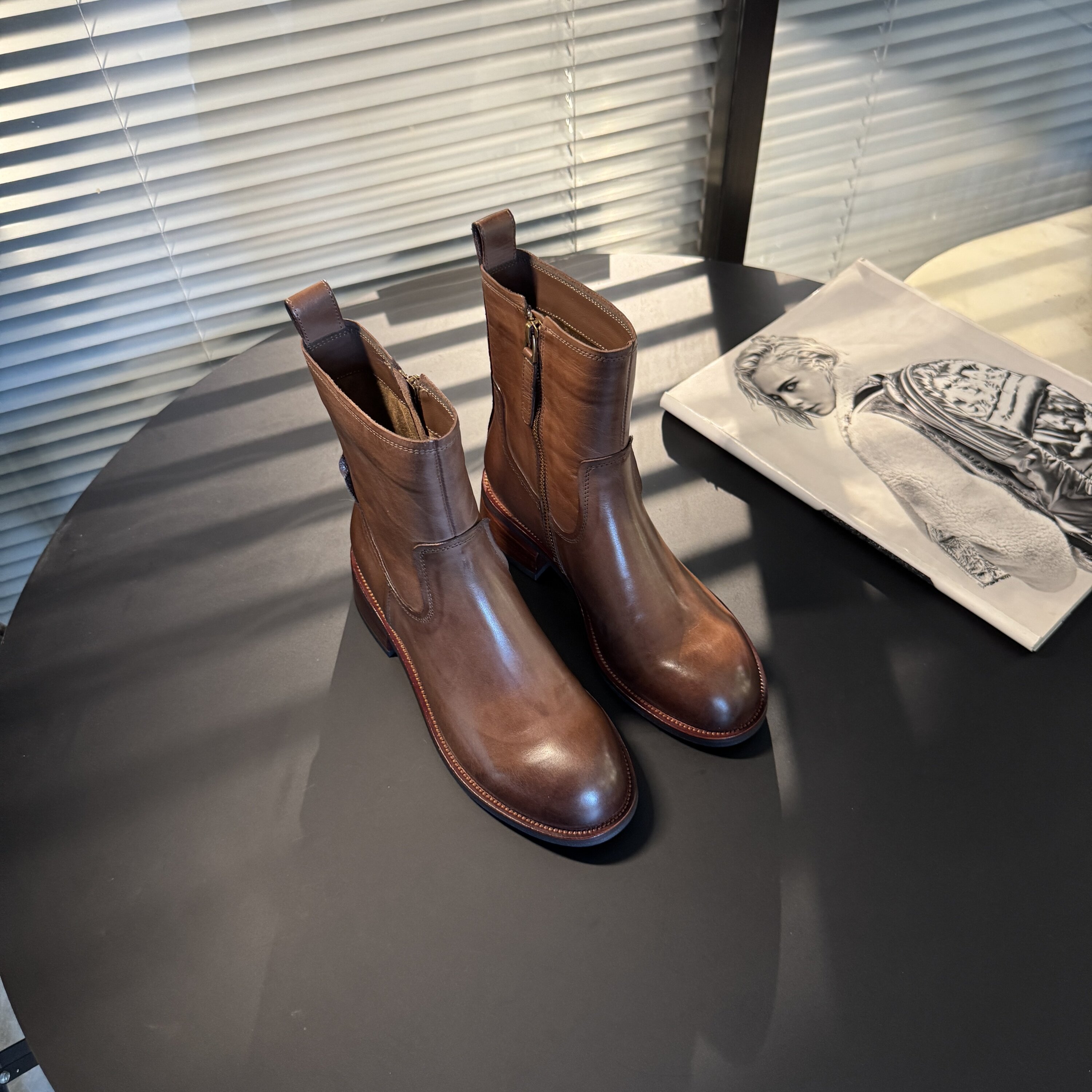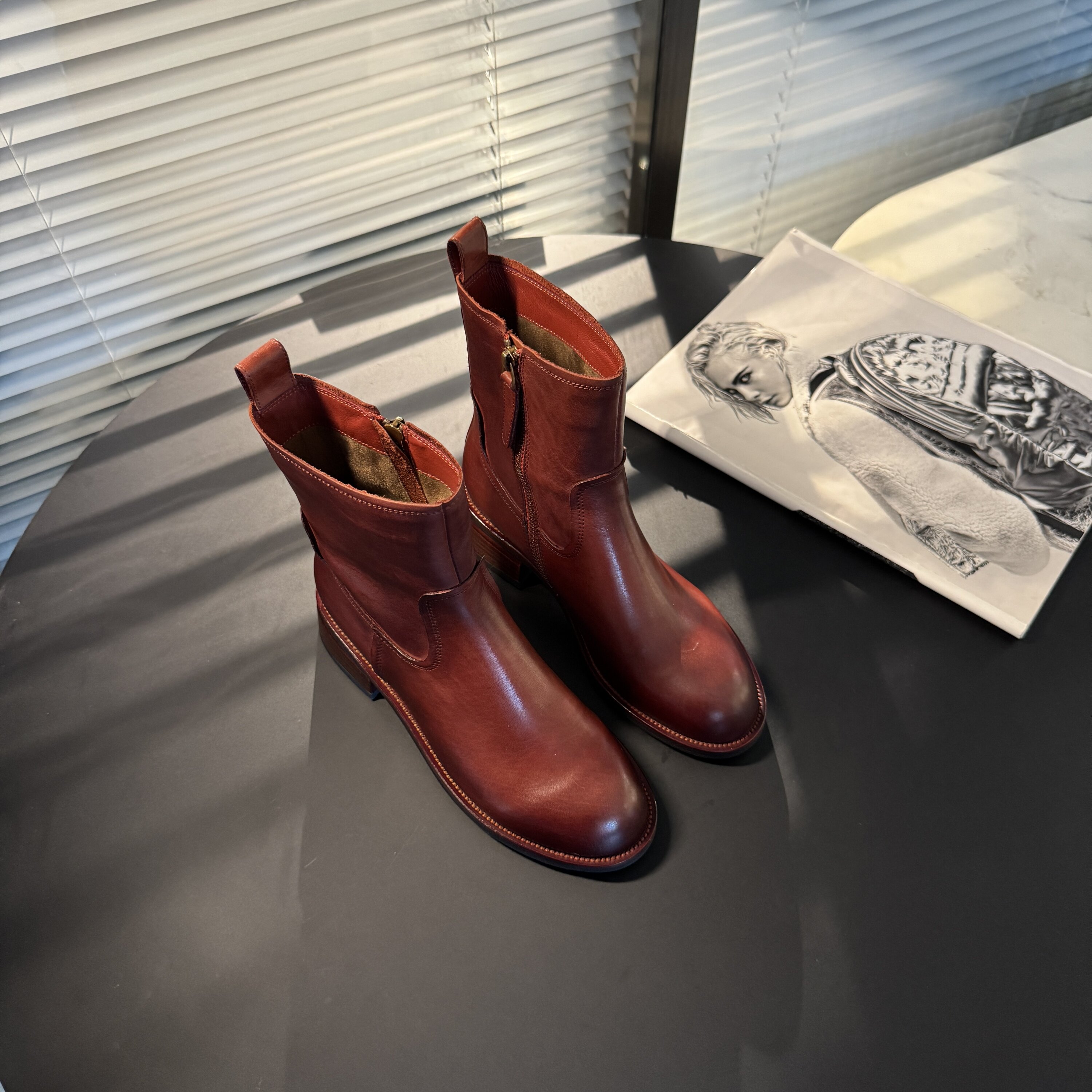 【周末推荐】2025冬季新款百搭款圆头潮流风英伦风平底短靴134177