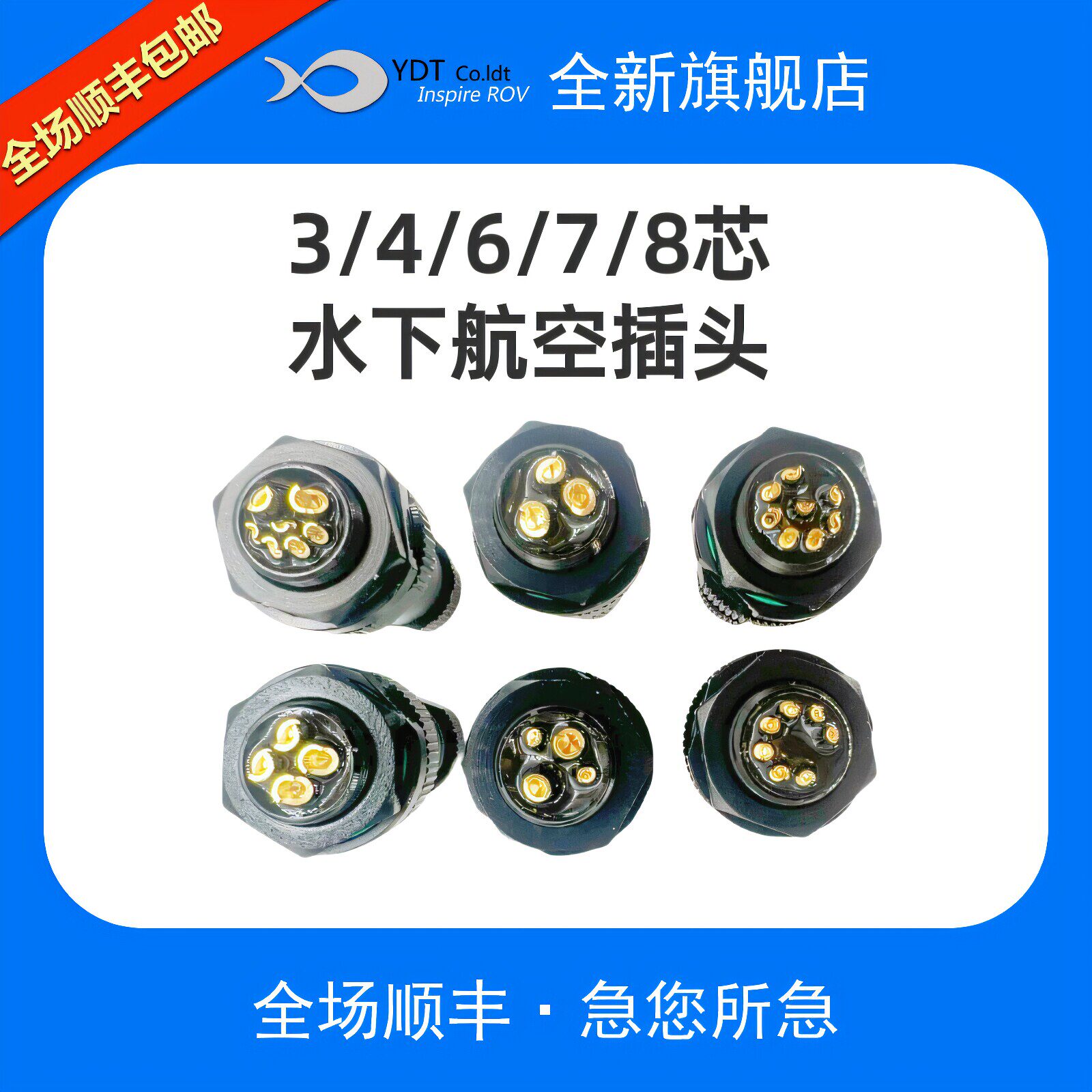 8/7/6/4芯水下航空插头 穿线接头 水下航空插头 水下机器人