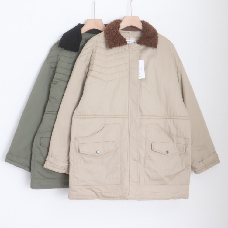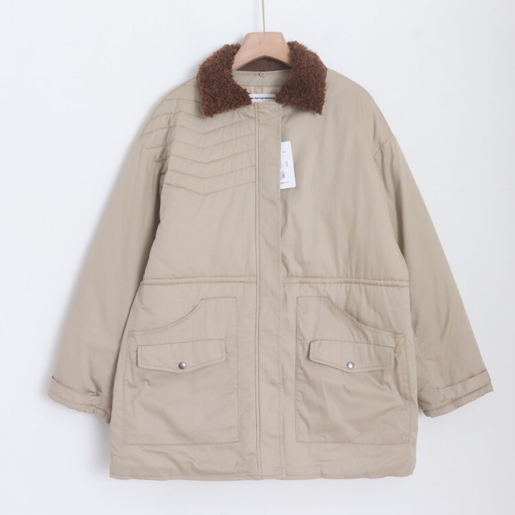 E010123日单新款1.25W拉链翻边毛领可拆宽松抽绳收腰女中长款棉服