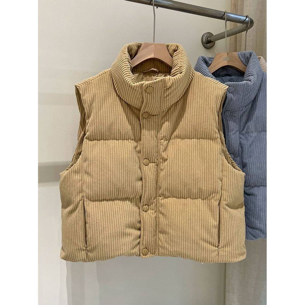 灯芯绒加棉马甲女短款2025冬季新款韩版立领宽松时尚宽松背心马