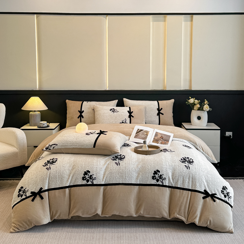 《小雀斑专属》A类雕花牛奶绒四件套-美拉德系列
