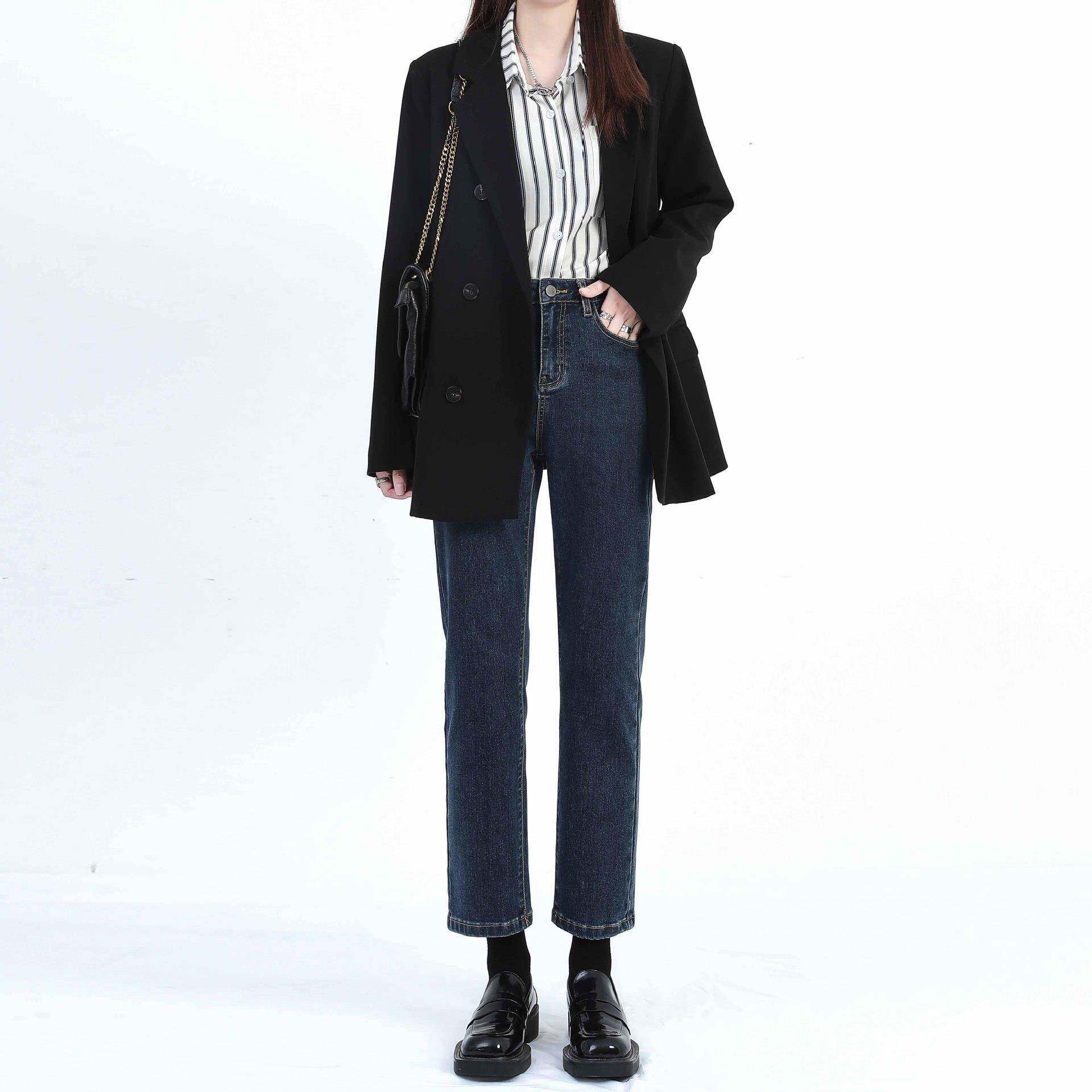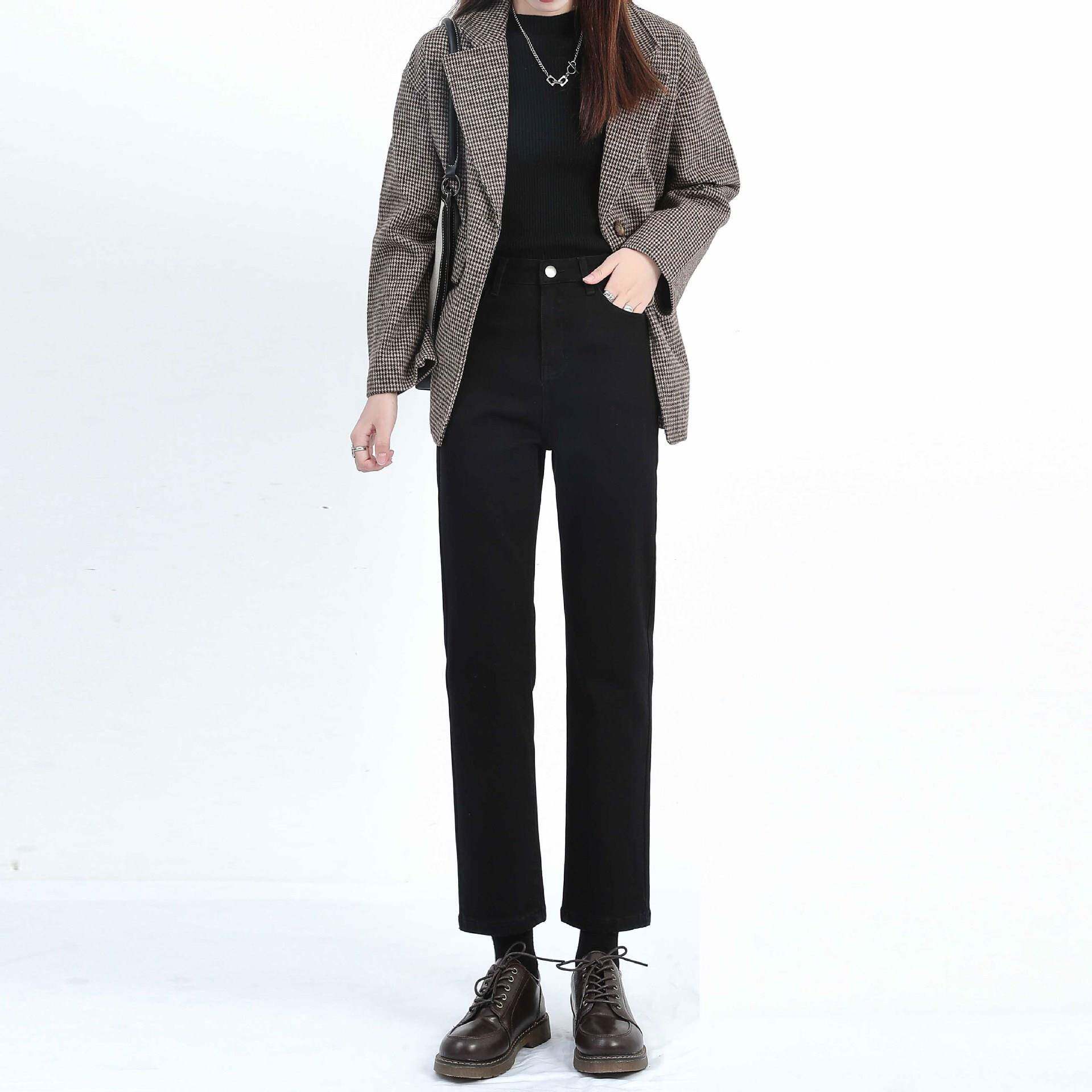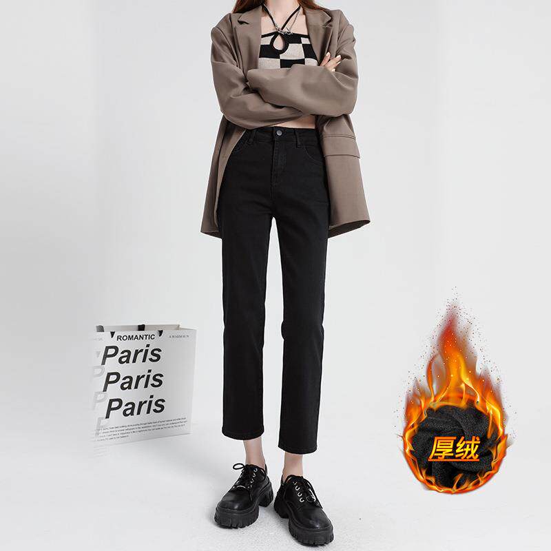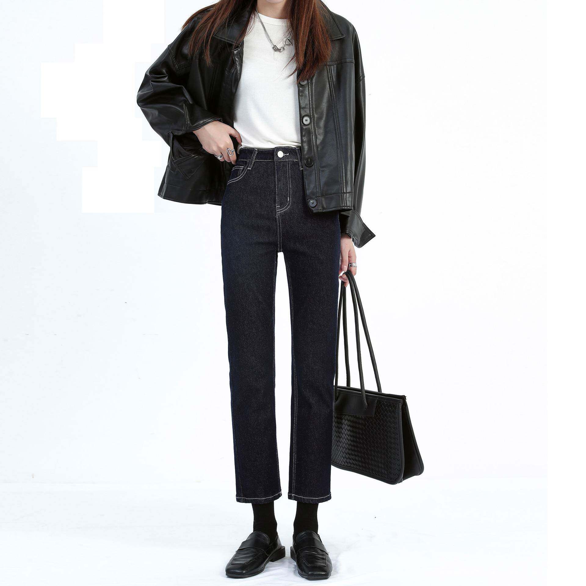 直筒烟管牛仔裤女休闲高腰显瘦百搭高弹力九分裤矮个子穿加绒加厚