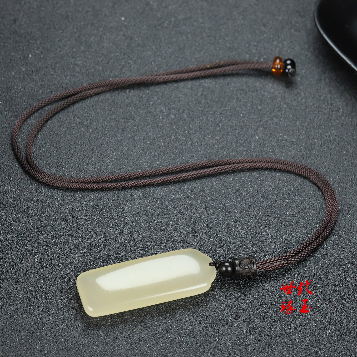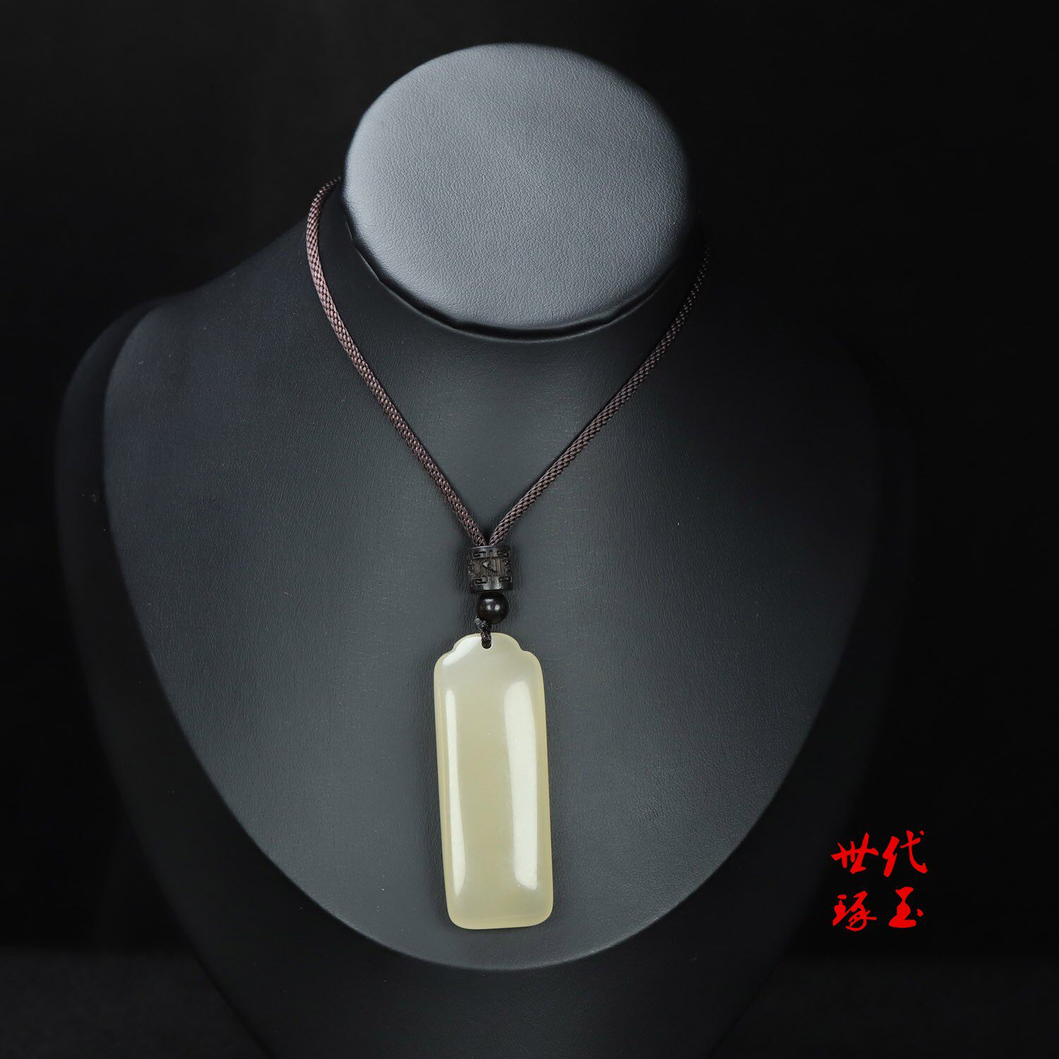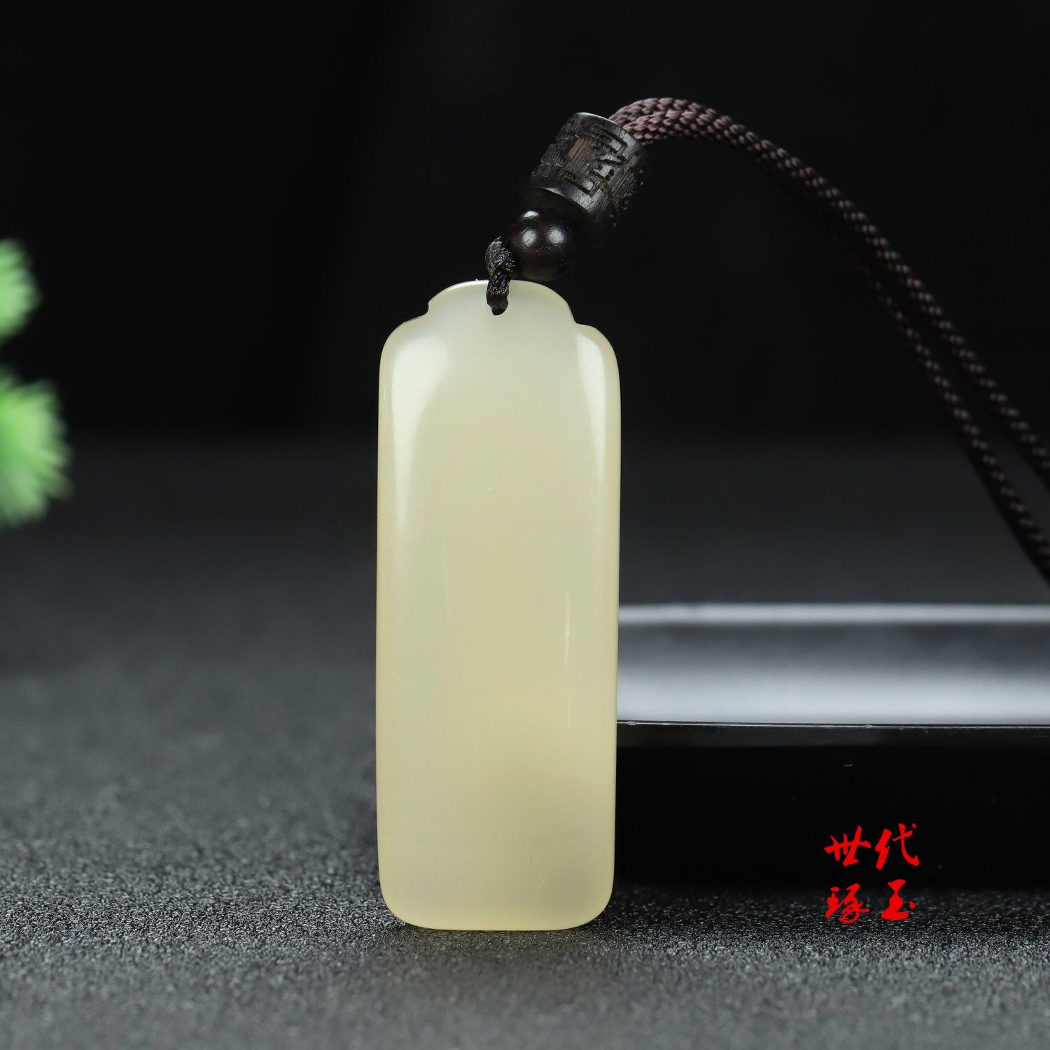 新疆和田玉青白玉面包牌玉坠玉石藕粉平安牌吊坠无事牌玉佩挂件