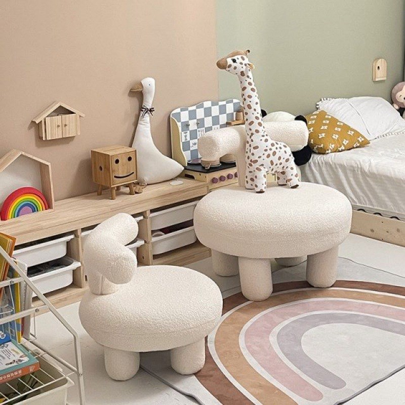 新款羊羔绒小凳子家用板凳现代简约客厅沙发儿童矮凳动物凳圆凳换