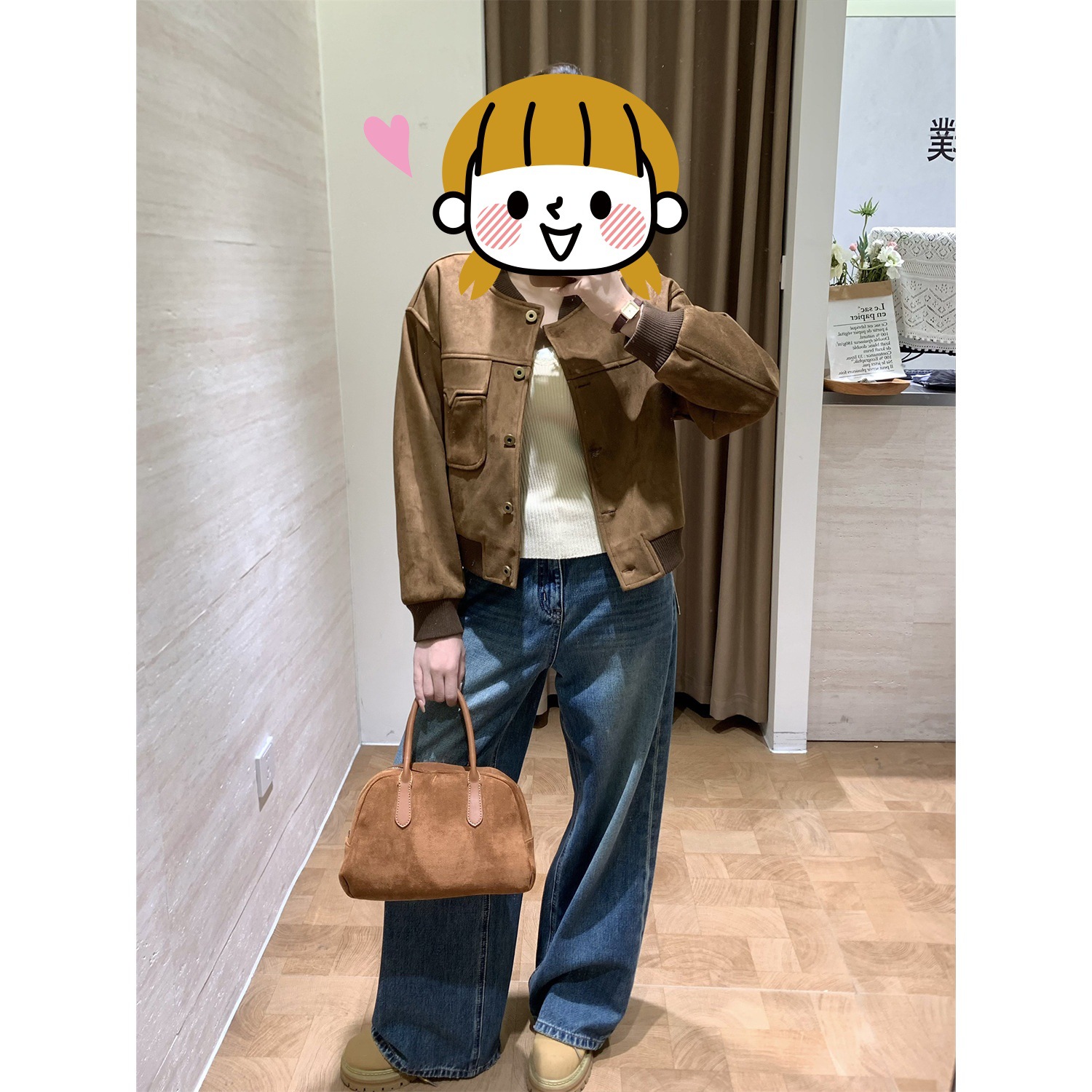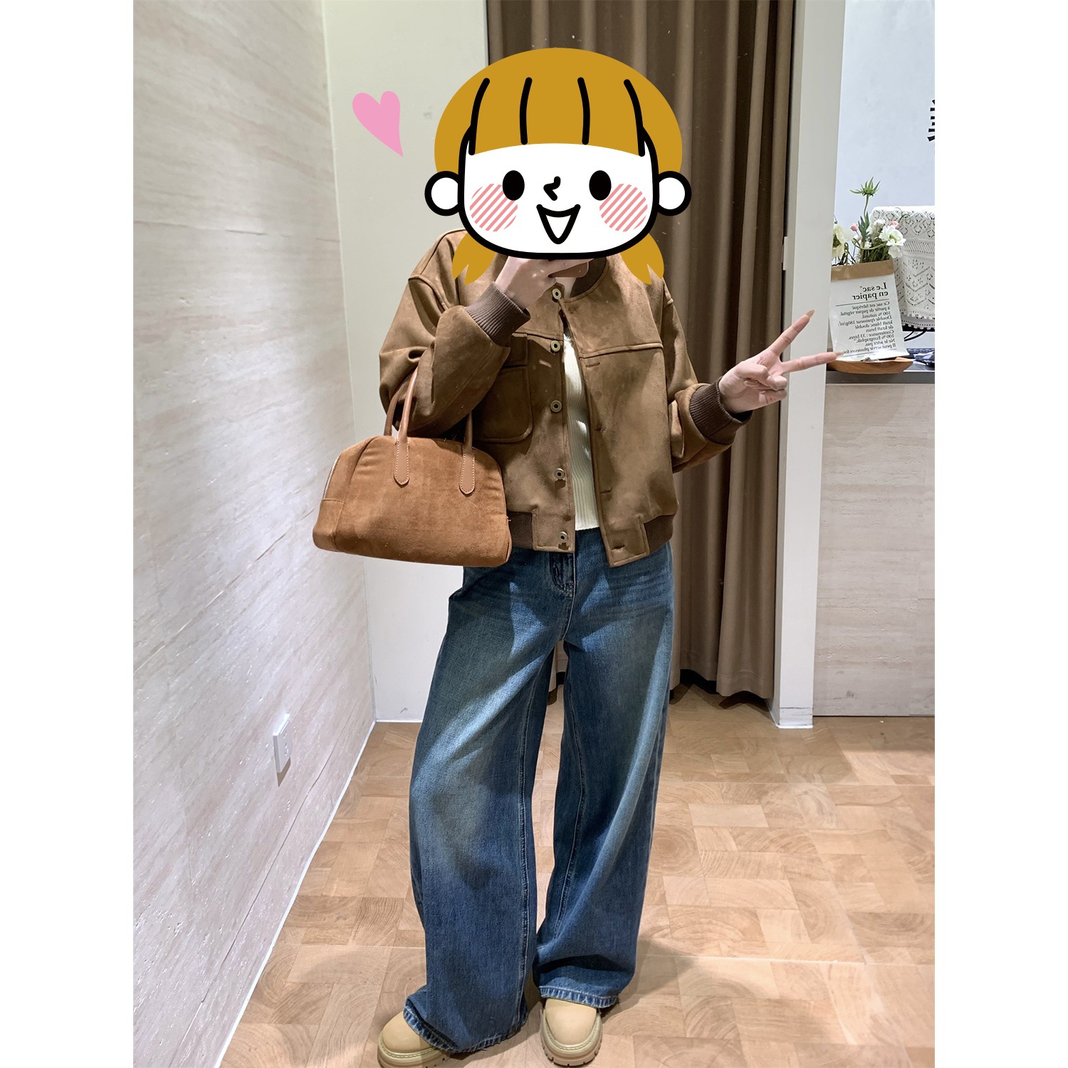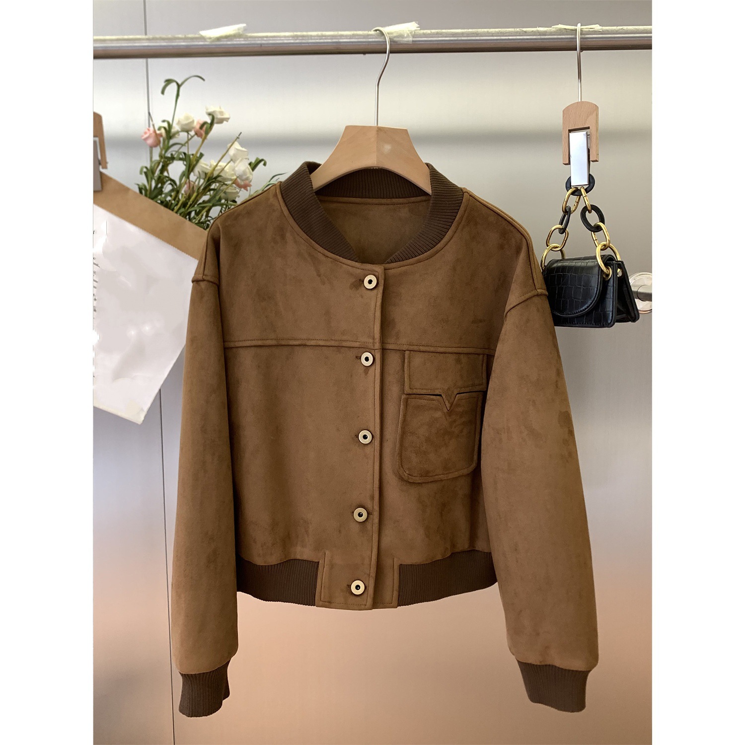 美式复古麂皮绒棒球服外套女2025秋季新款小个子短款机车服夹克衫