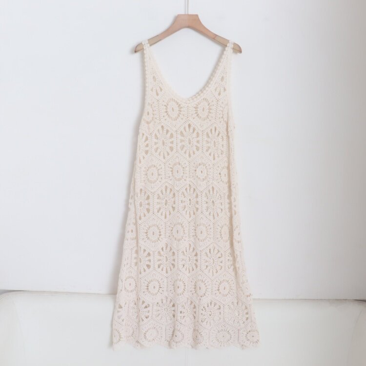 D210126日单春夏款客供V领套头宽松女甜美气质纯棉镂空钩花背心裙