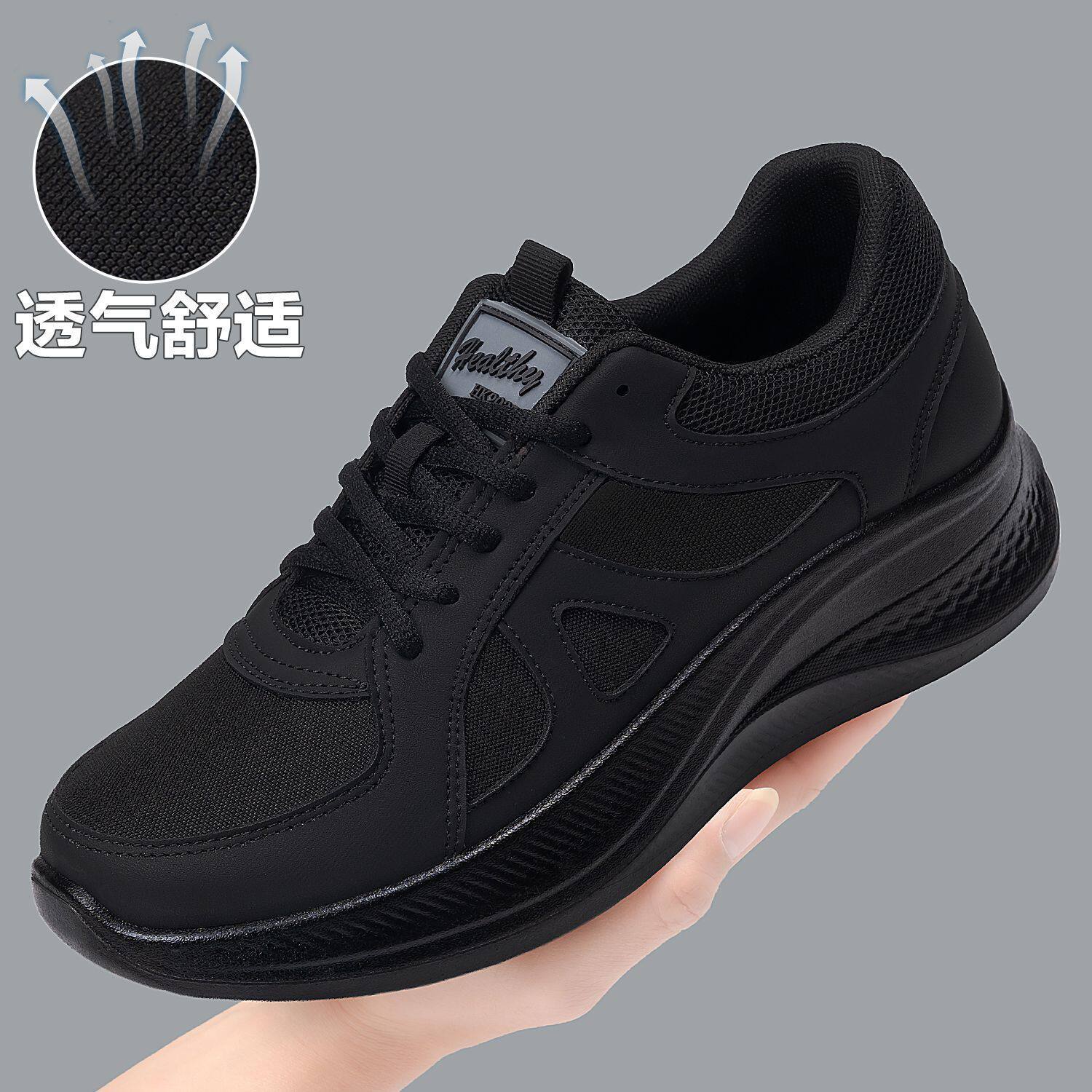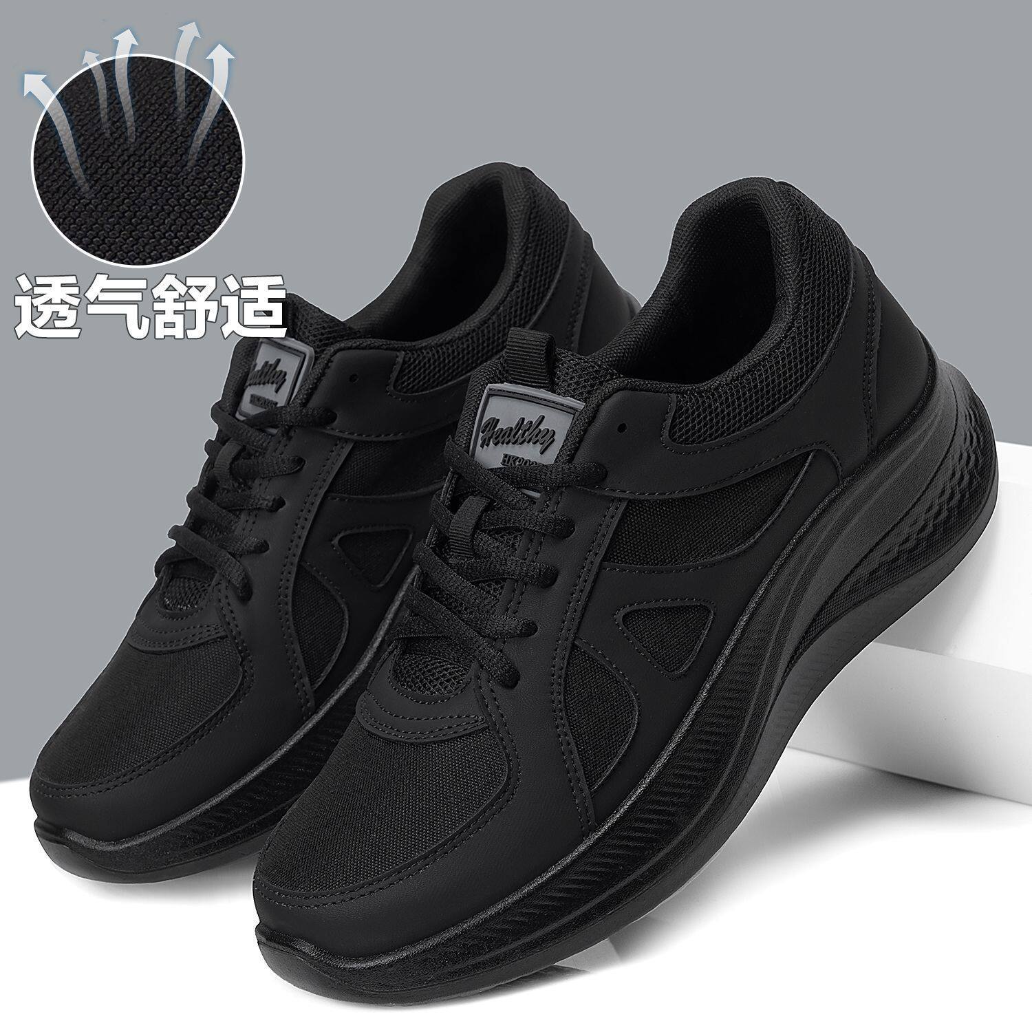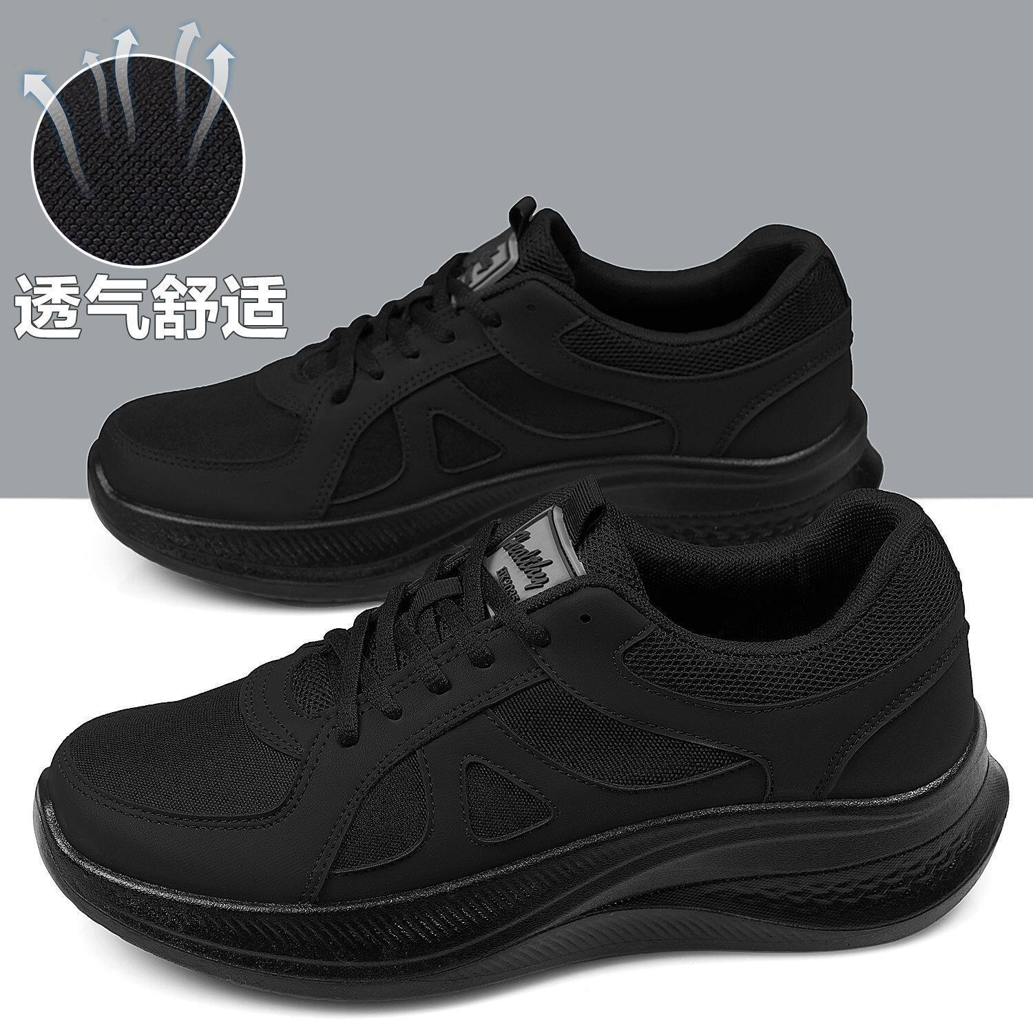 黑色透气休闲男鞋2026新款爆款春夏超轻聚氨酯软底男士休闲运动鞋