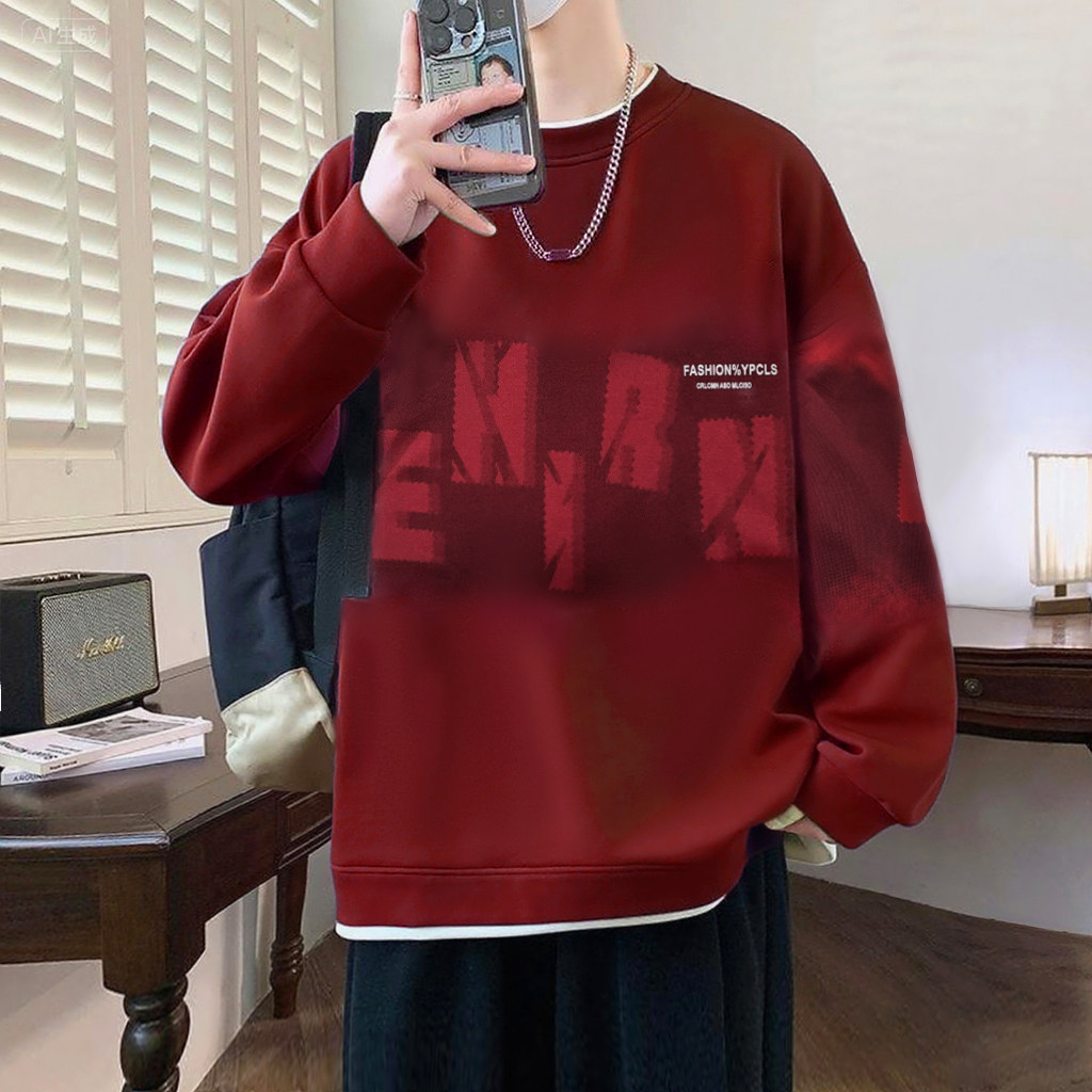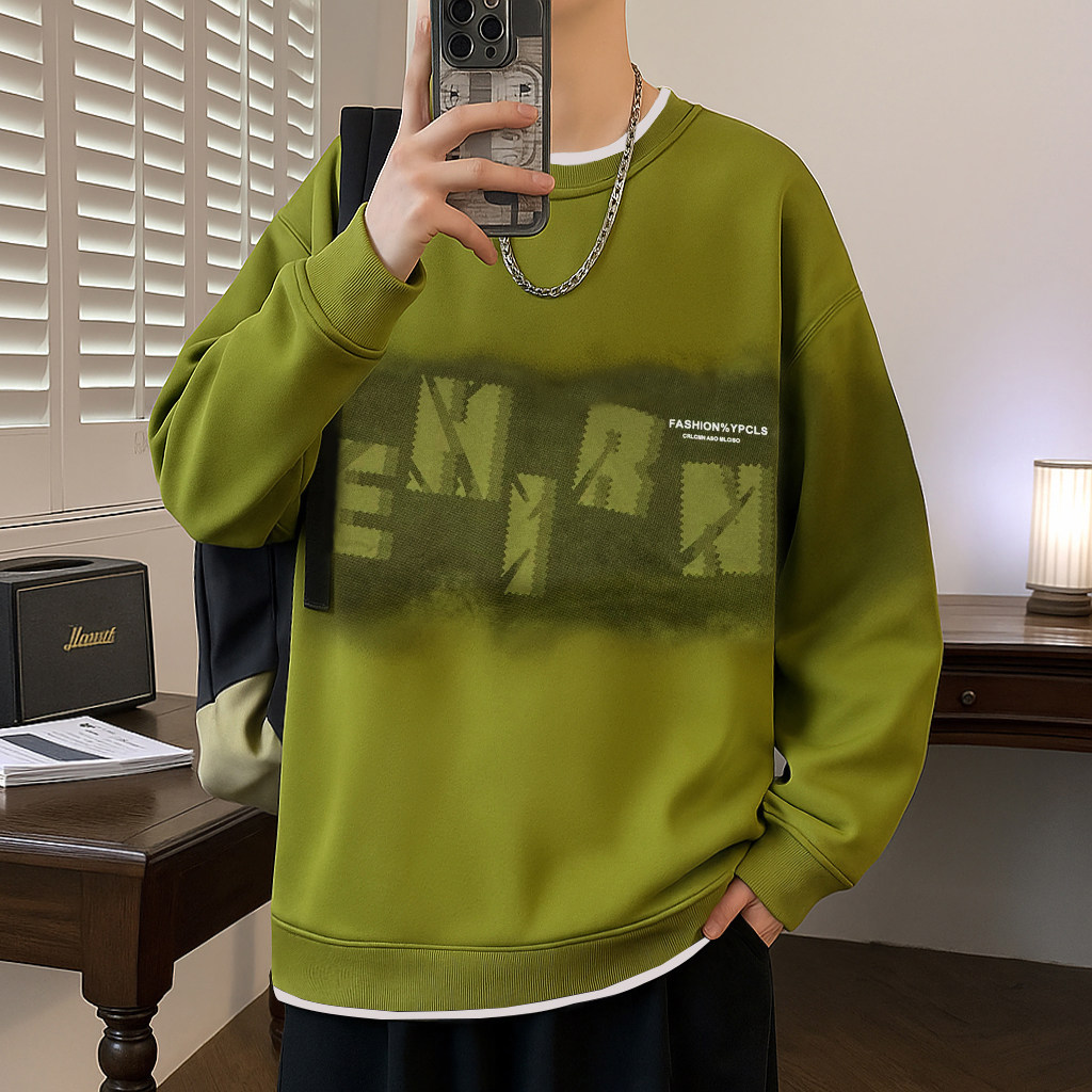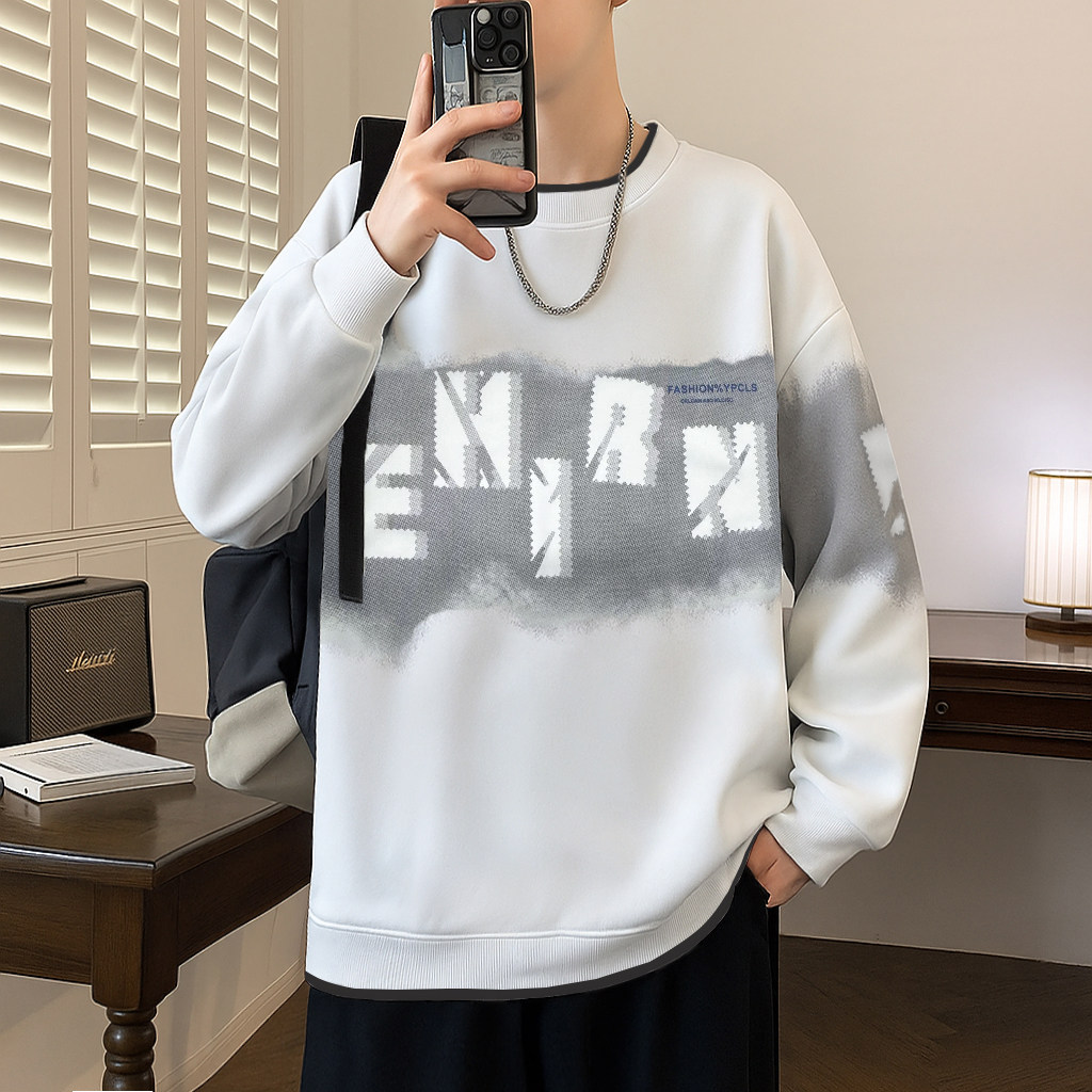 韩系潮男户外街头穿搭潮流小众印花圆领卫衣男生秋季重磅长袖外套