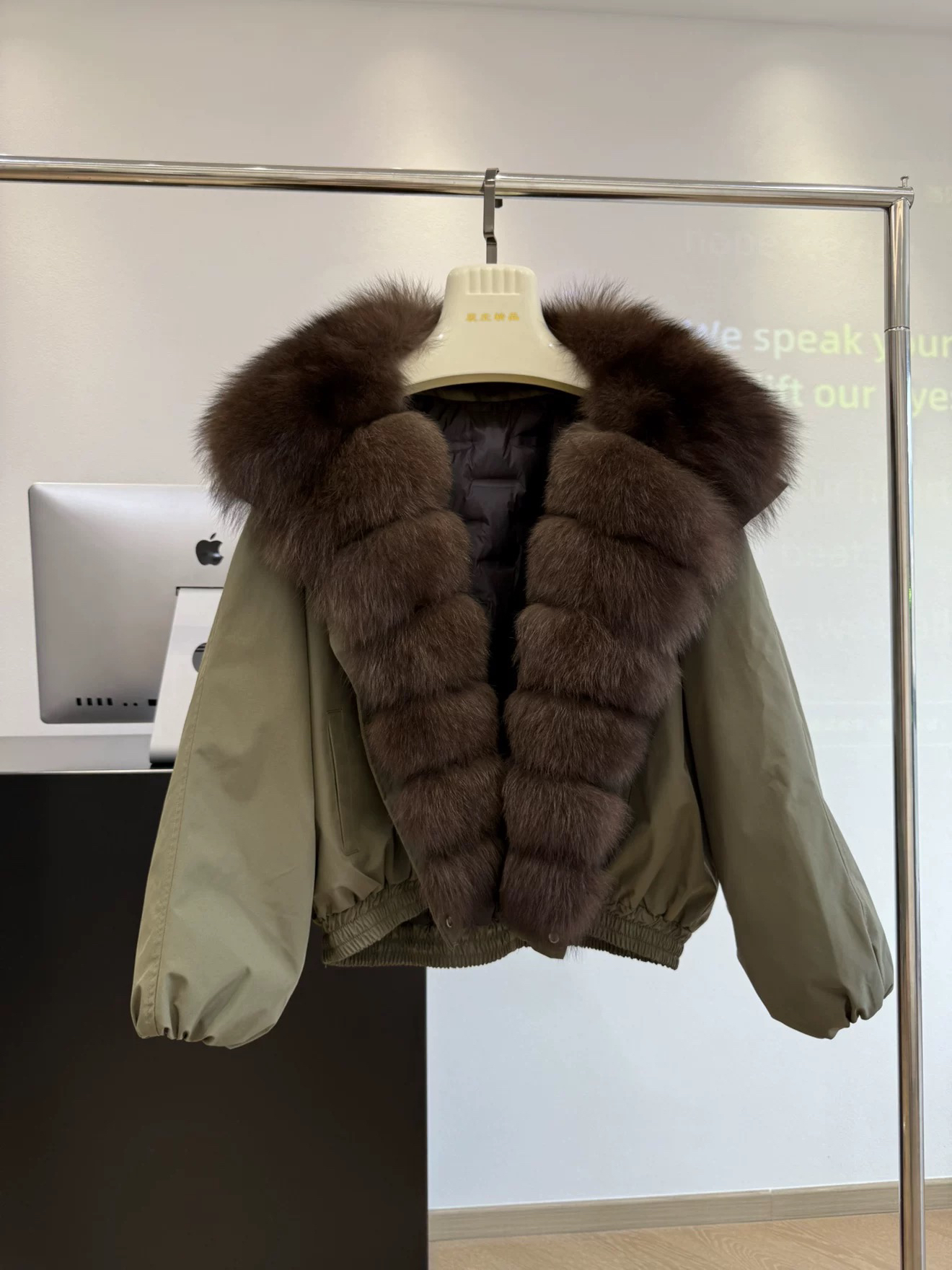 冬季新款大毛领狐狸毛皮草短款鹅绒羽绒服女外套派克大衣加厚