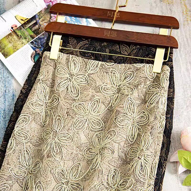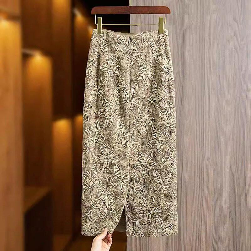 2025新款手工盘花刺绣蕾丝半身裙女法式优雅气质中长裙开叉包臀裙
