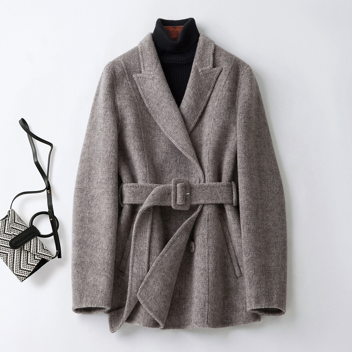 Q021#双面羊绒大衣女2025秋冬新款修身西装小个子高级感毛呢外套