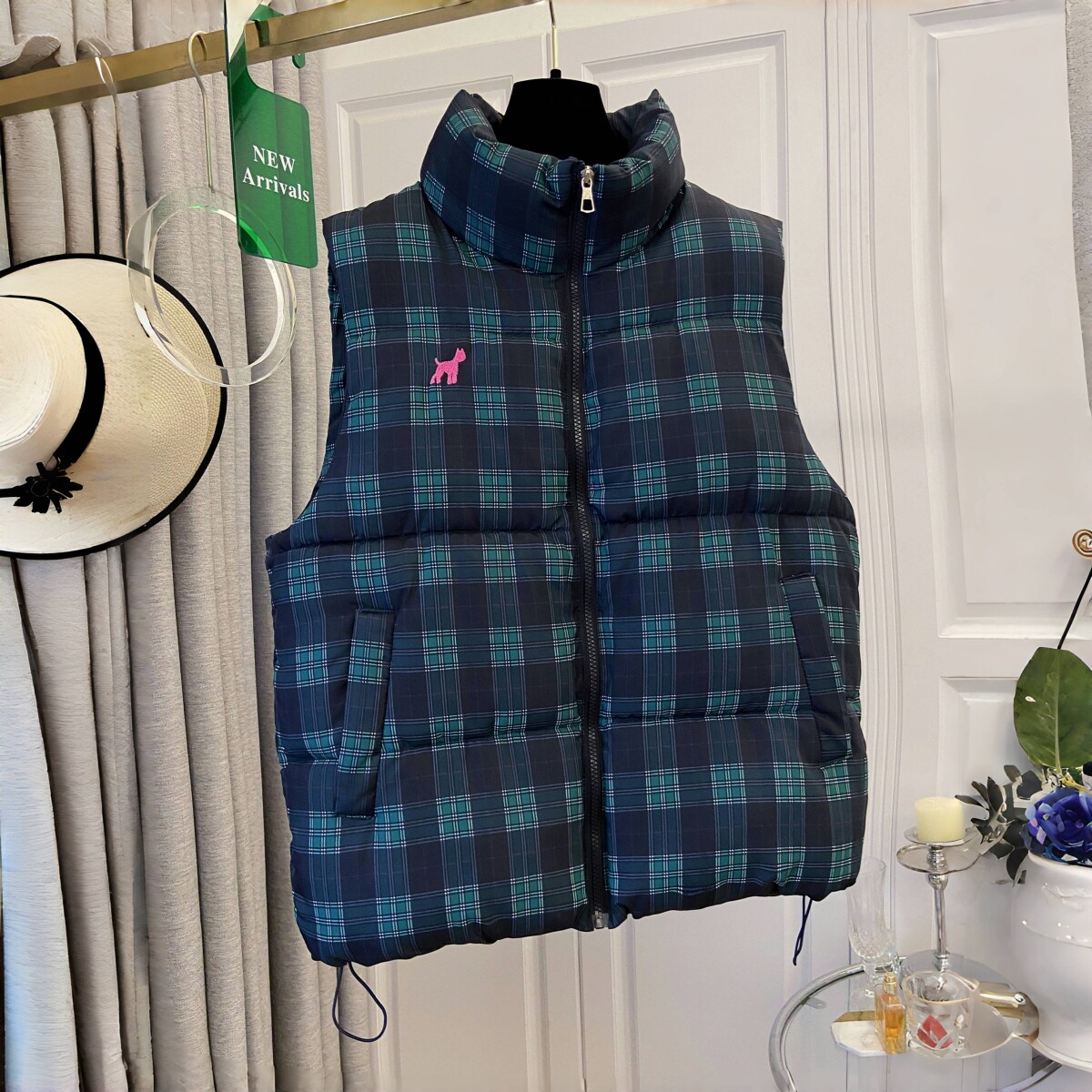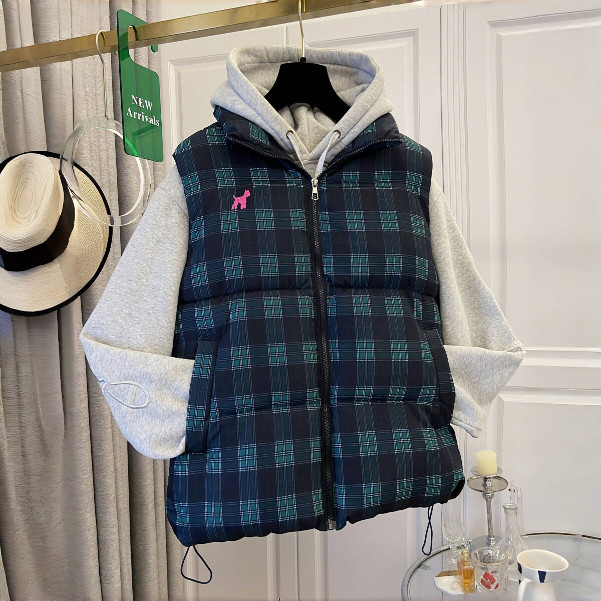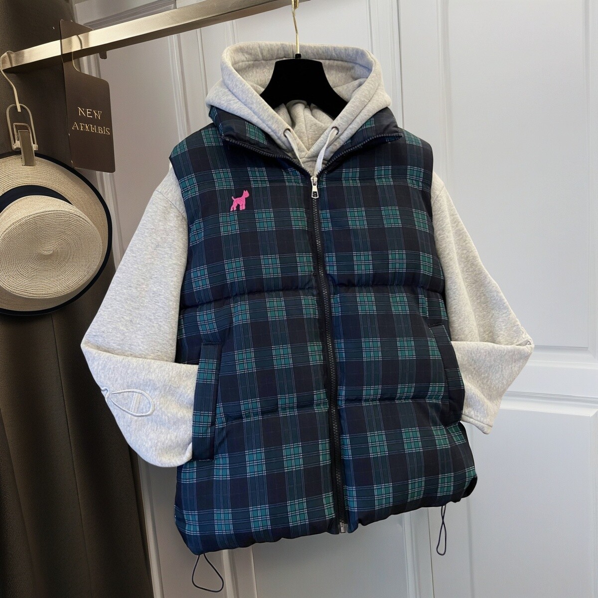 超好看胖mm大码刺绣格纹棉服马甲女秋冬外套无袖穿搭棉坎肩潮601