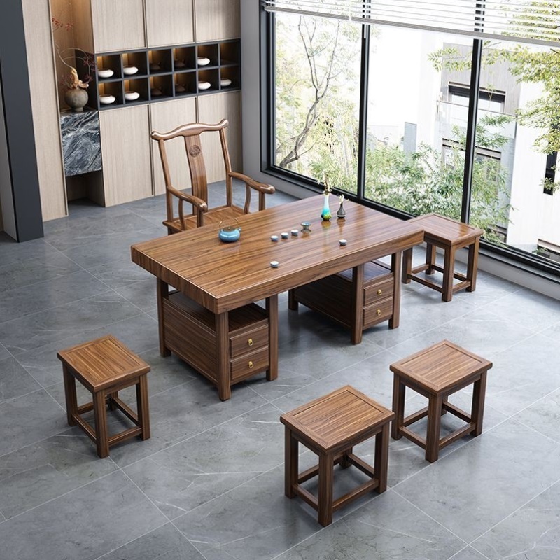小户型阳台实木茶桌桌椅茶台组合大板办公家用中式功夫茶几小板