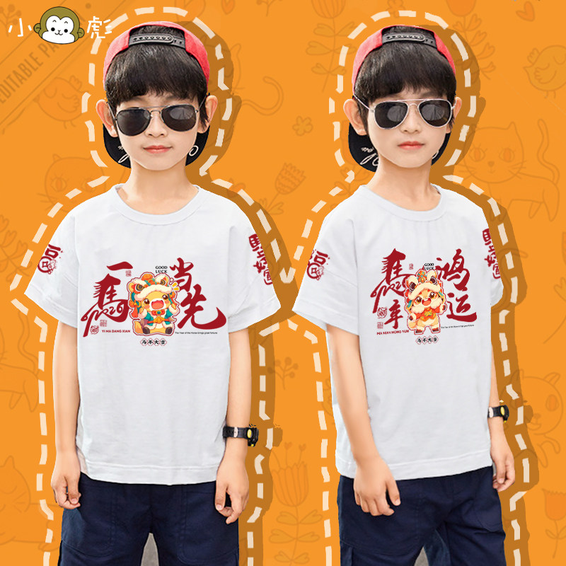 首页> 儿童> 2026马年过新年鸿运一马当先春节短袖t恤衫男女儿童装学生款半袖