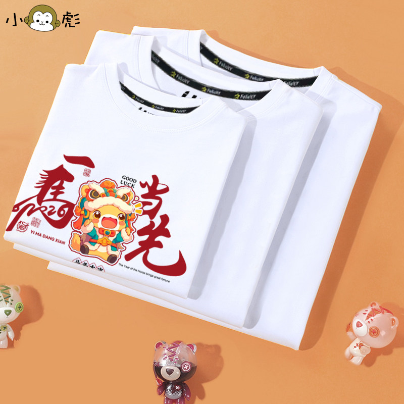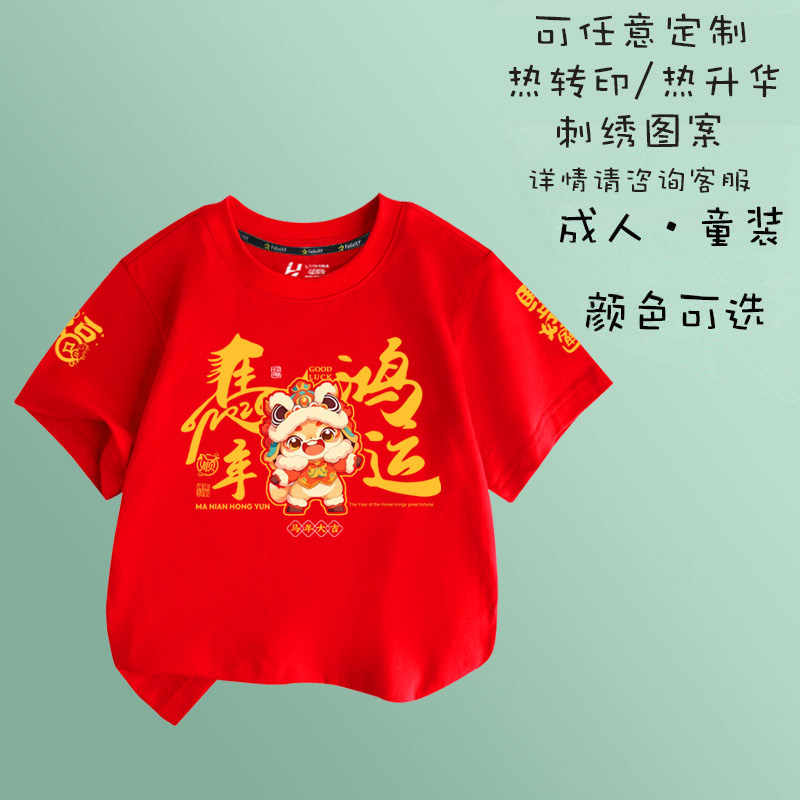 2026马年过新年鸿运一马当先春节短袖t恤衫男女儿童装学生款半袖