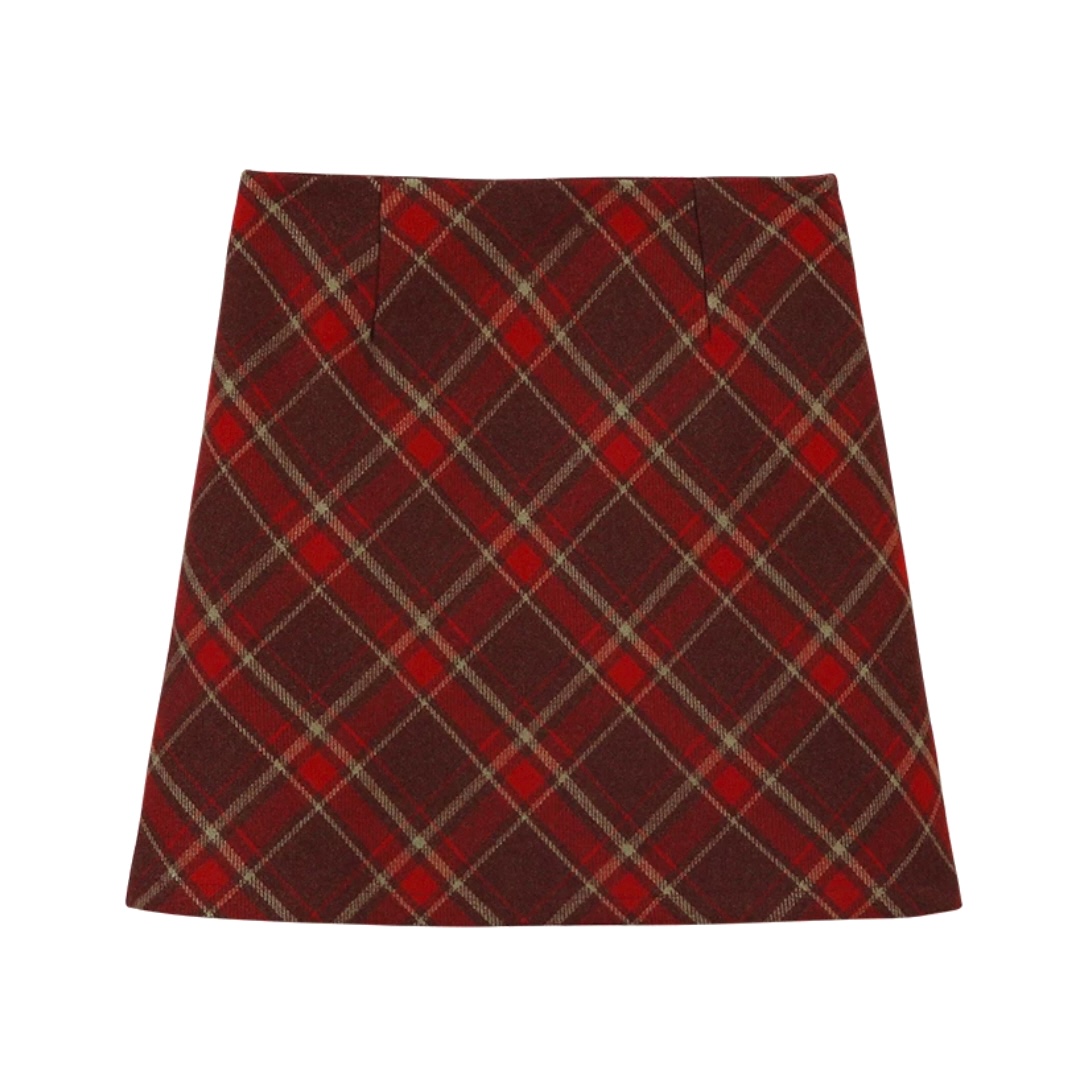 [恩佳专享】毛呢A字短裙秋冬半身格子短裙高腰修身包臀裙8025