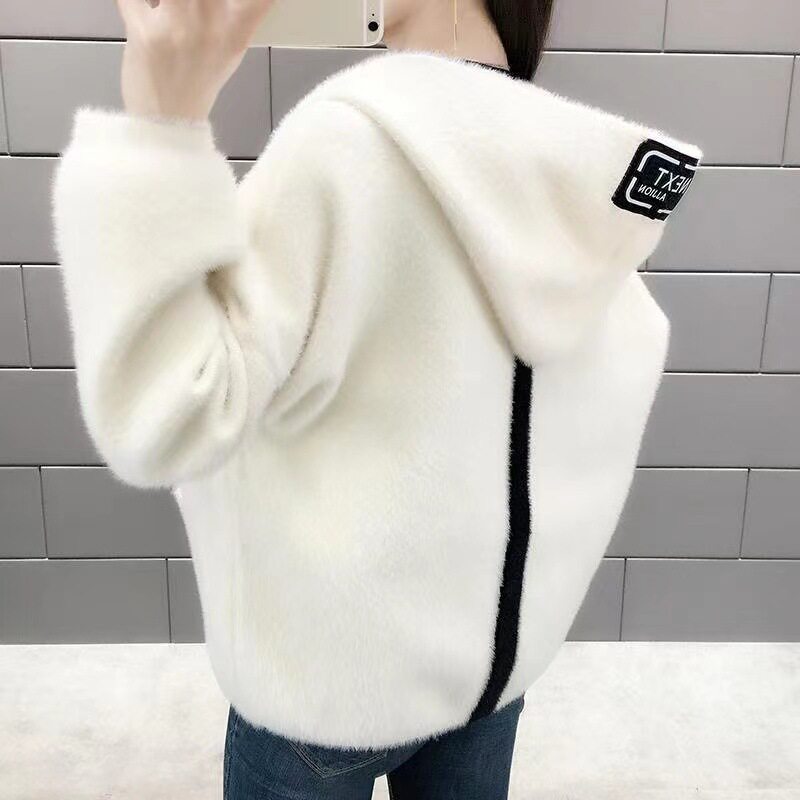 女士短外套2023年新款爆连帽水貂绒外衣开衫春秋宽松百搭毛衣