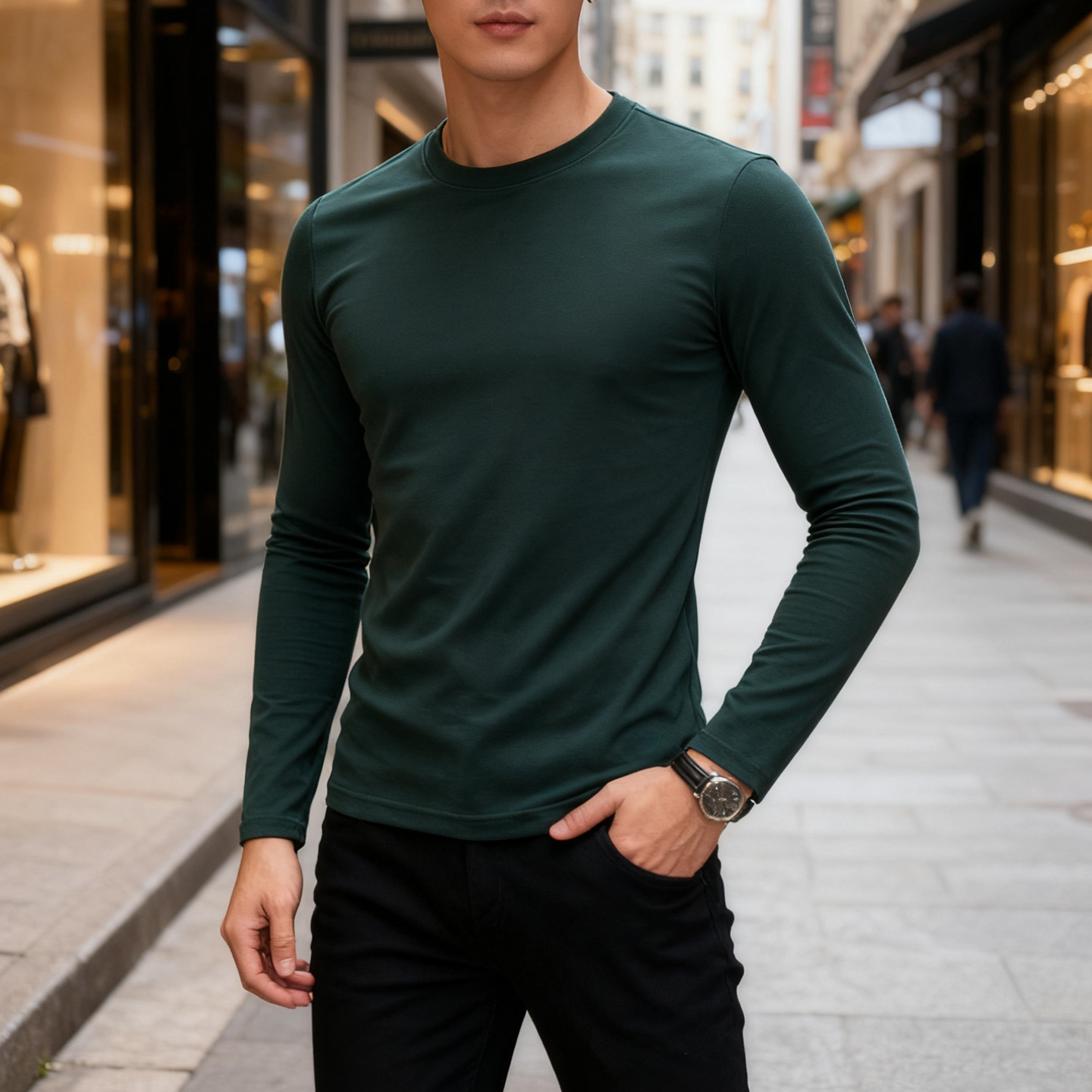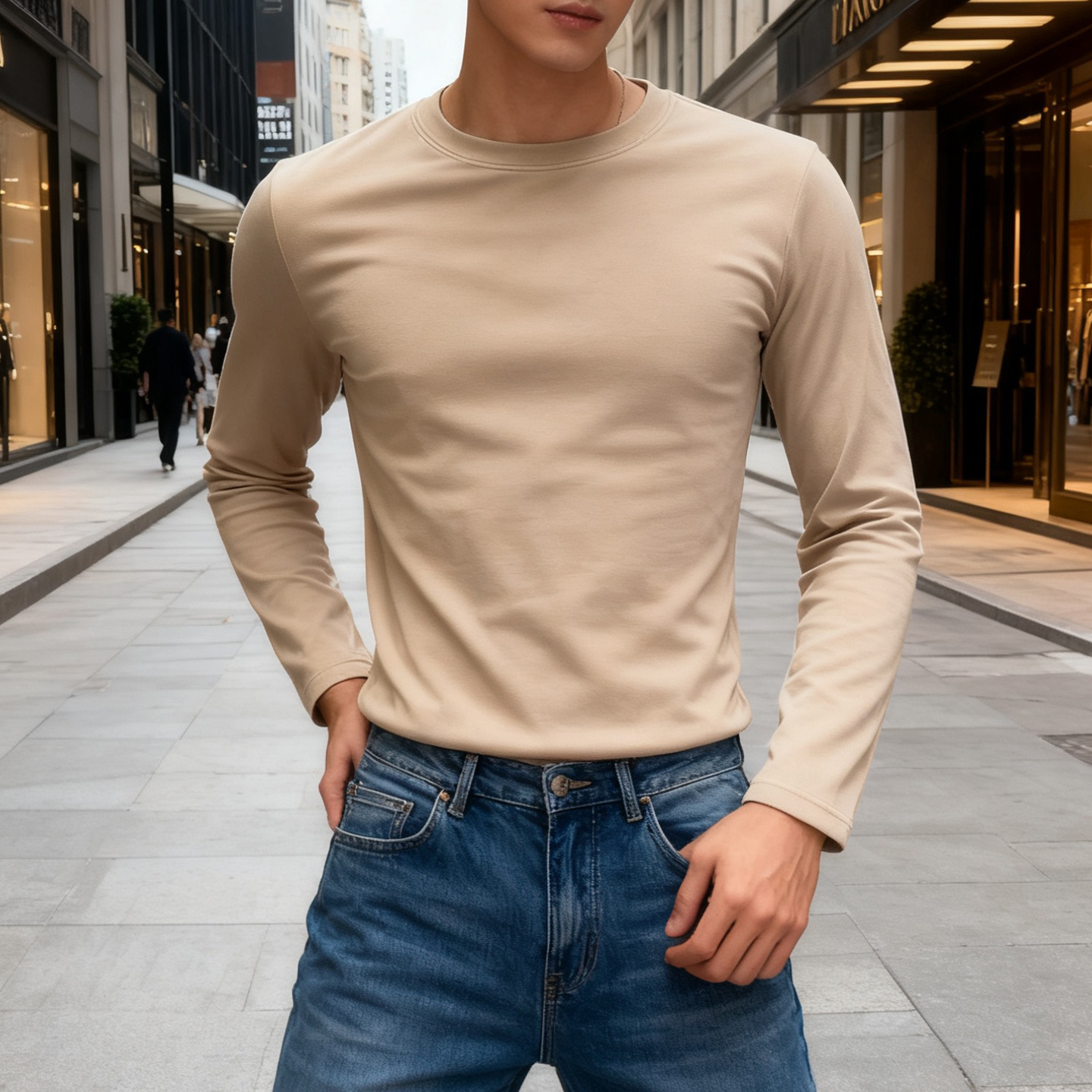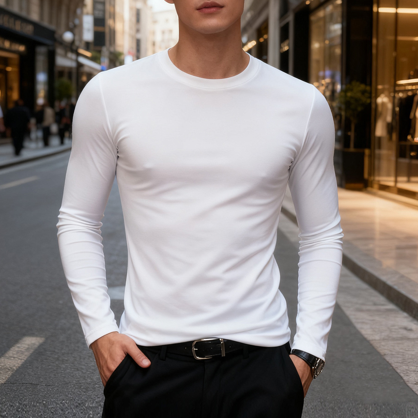 紧身圆领厚实秋冬棉打底衫纯色男士内搭弹力简约白色长袖T恤上衣