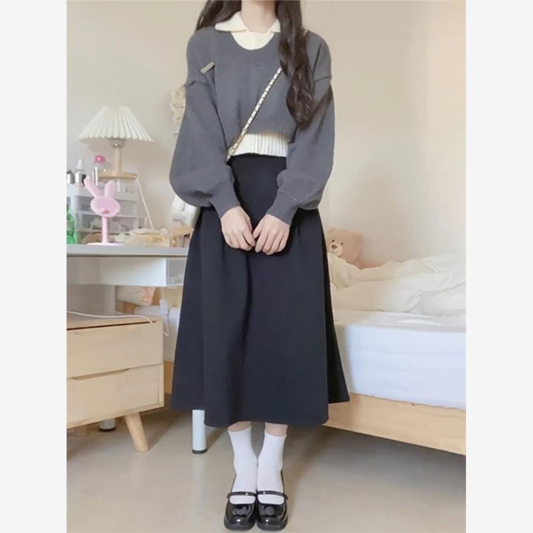 减龄搭配全套学院风韩剧女主角套装2025秋季女性超级热裙套装长裙