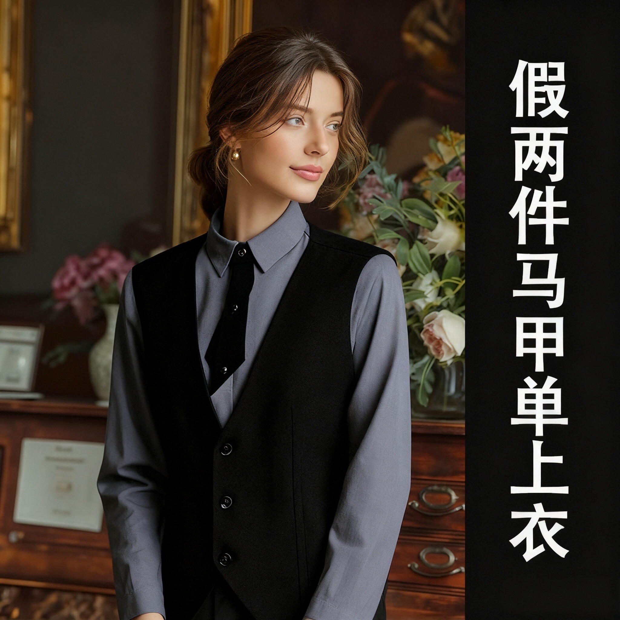 首页> 女装> 2025新款高端假两件衬衫酒保酒吧KTV西餐厅服务员工作服定制logo