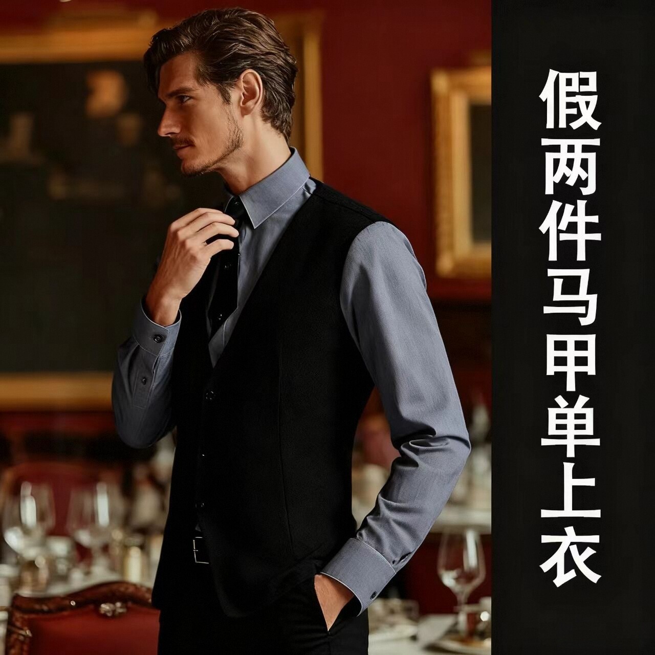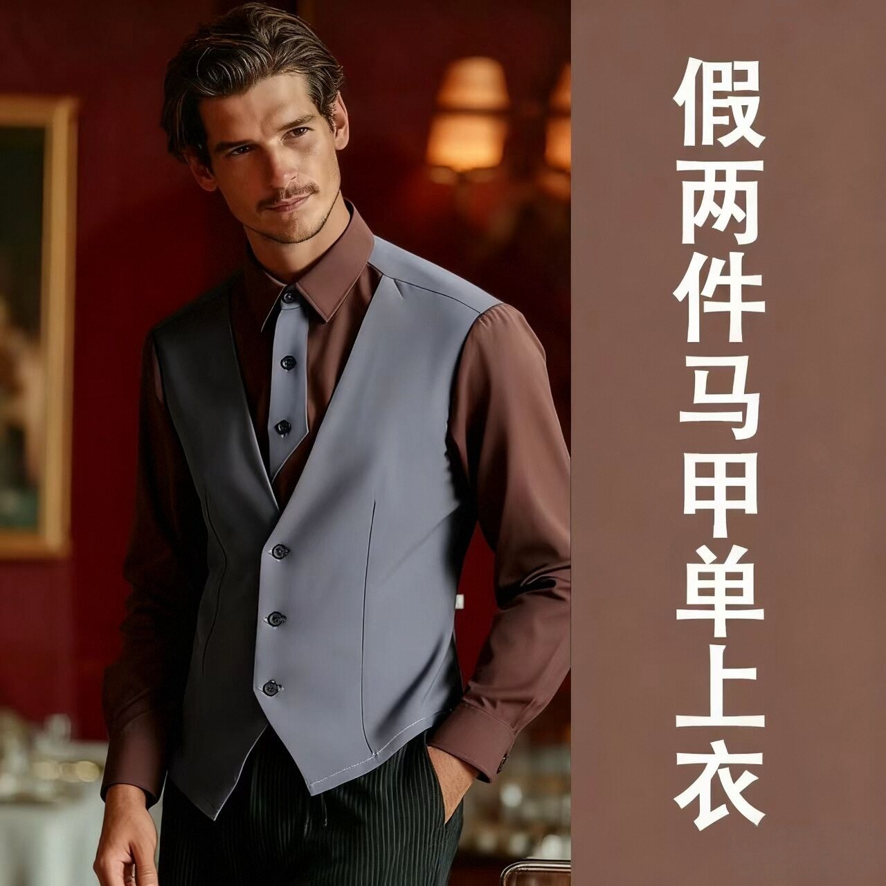 2025新款高端假两件衬衫酒保酒吧KTV西餐厅服务员工作服定制logo