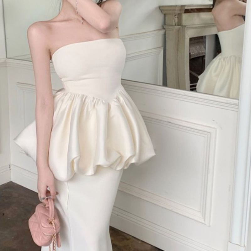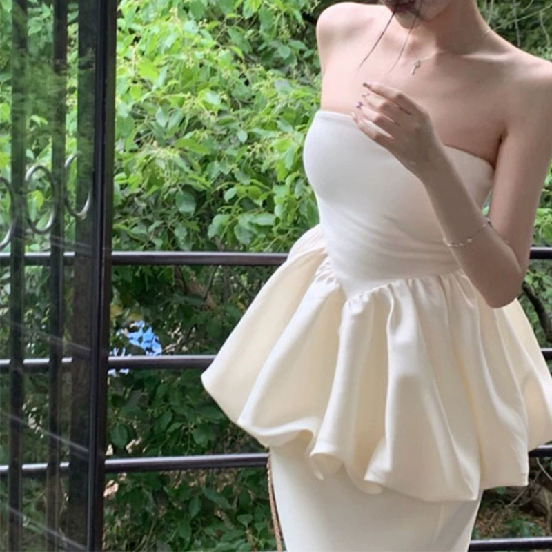 2025年夏季新款韩系小众一字肩抹胸上衣半身裙高级感小洋装两件套