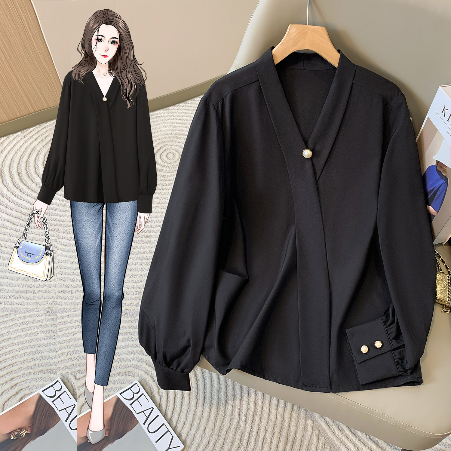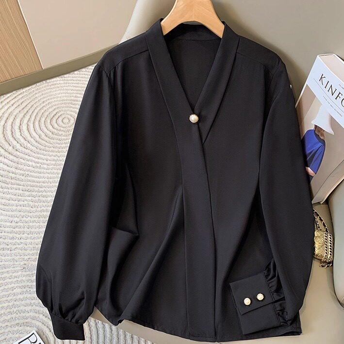 白色衬衫女长袖大码装韩版气质V领设计感小众衬衫显瘦百搭工作服