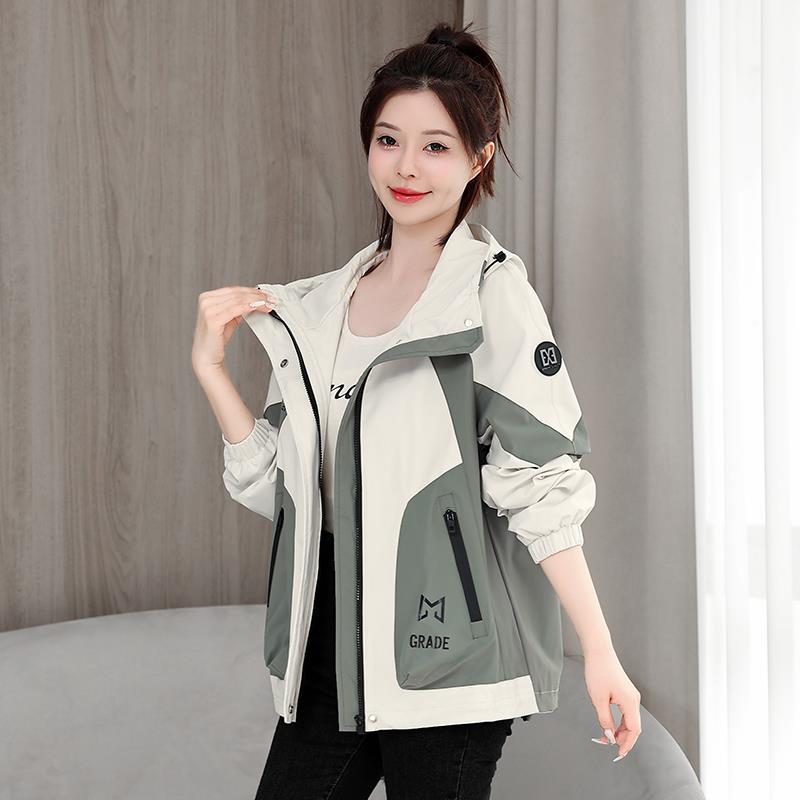时尚冲锋衣短款外套春秋2025新款韩版宽松休闲连帽夹克上衣女装潮