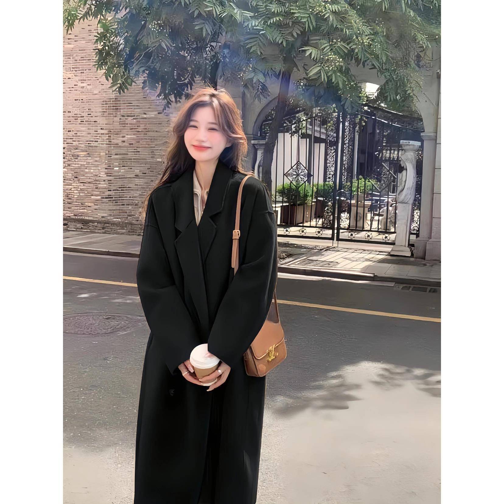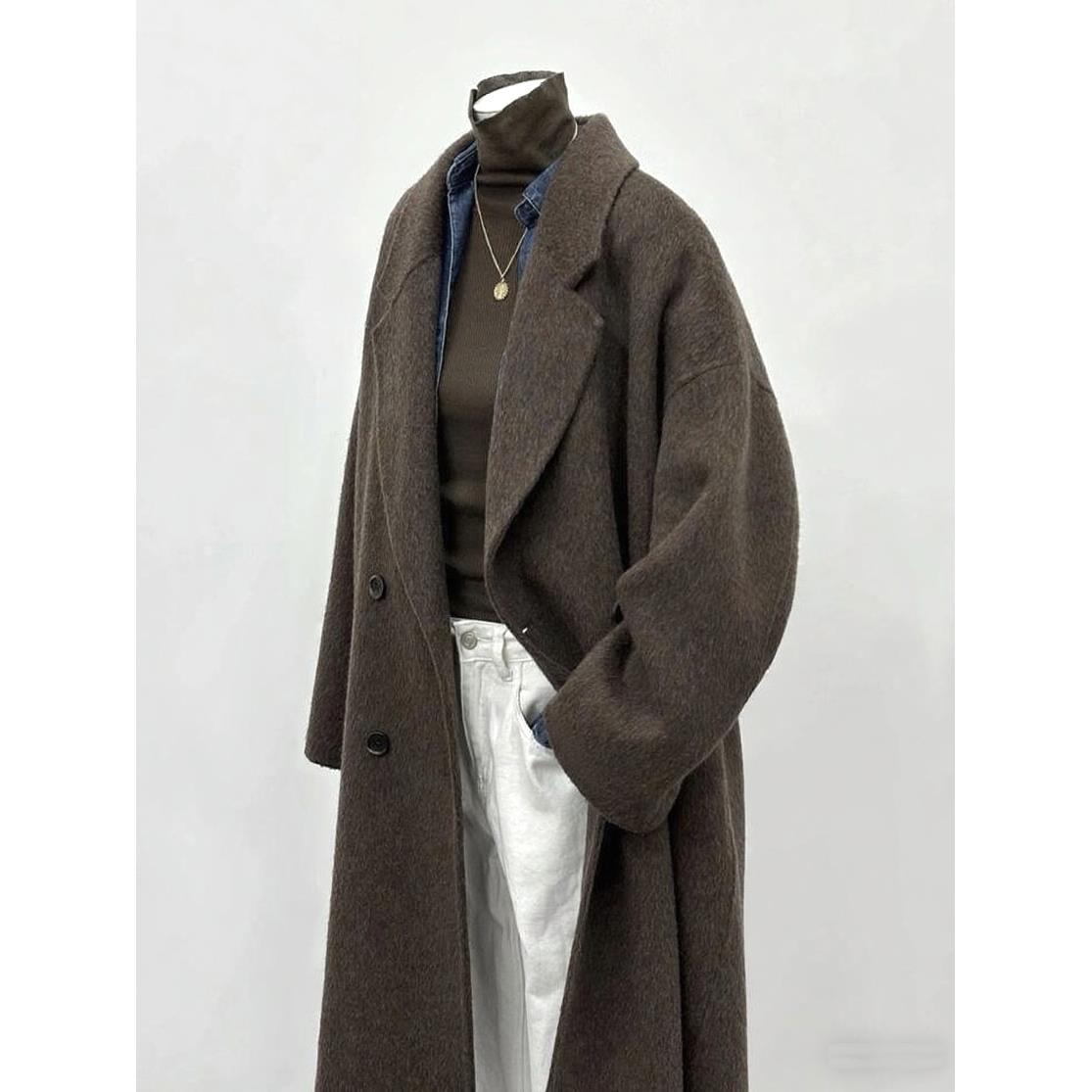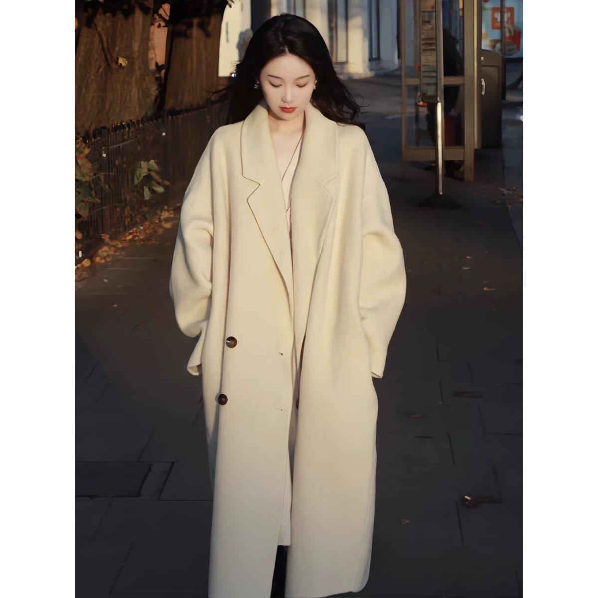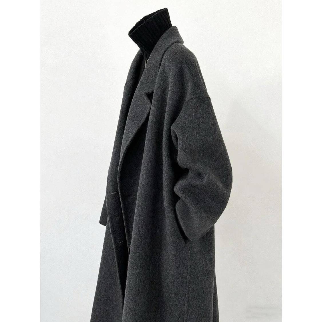 黑灰色双面羊绒大衣女2025秋冬新款中长款韩系宽松高端羊毛呢外套