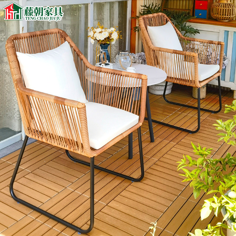藤朝阳台小桌椅休闲区小桌子北欧户外庭院靠背椅小茶几三件套组合