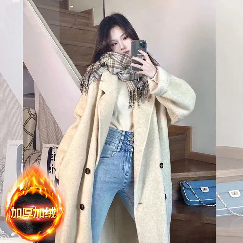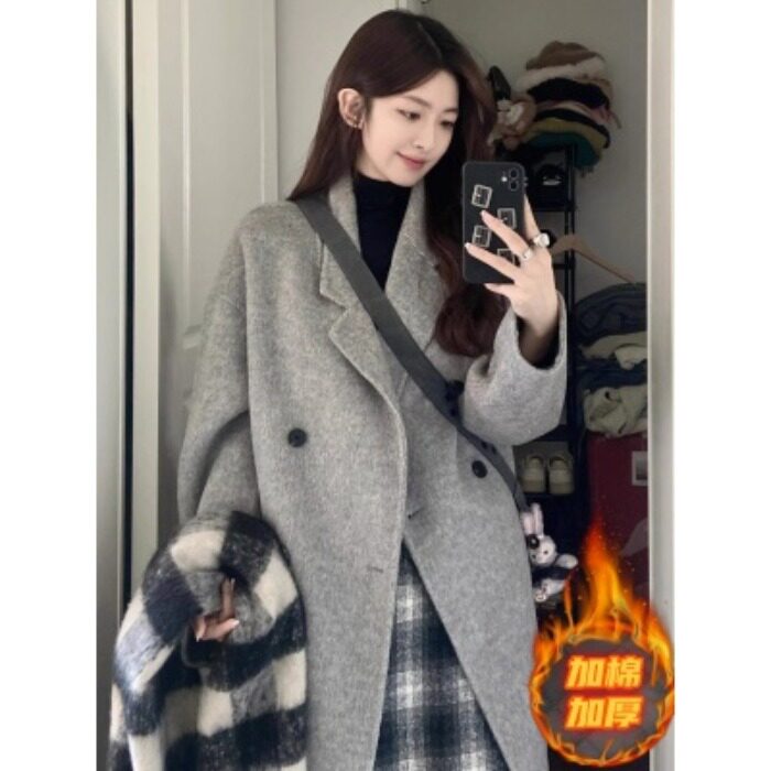 夹棉呢子大衣女秋冬外贸爆毛呢外套高级外套小个子加厚赫本风棉服