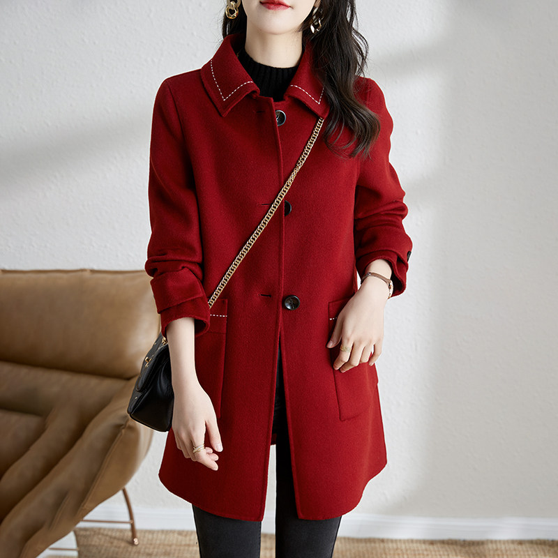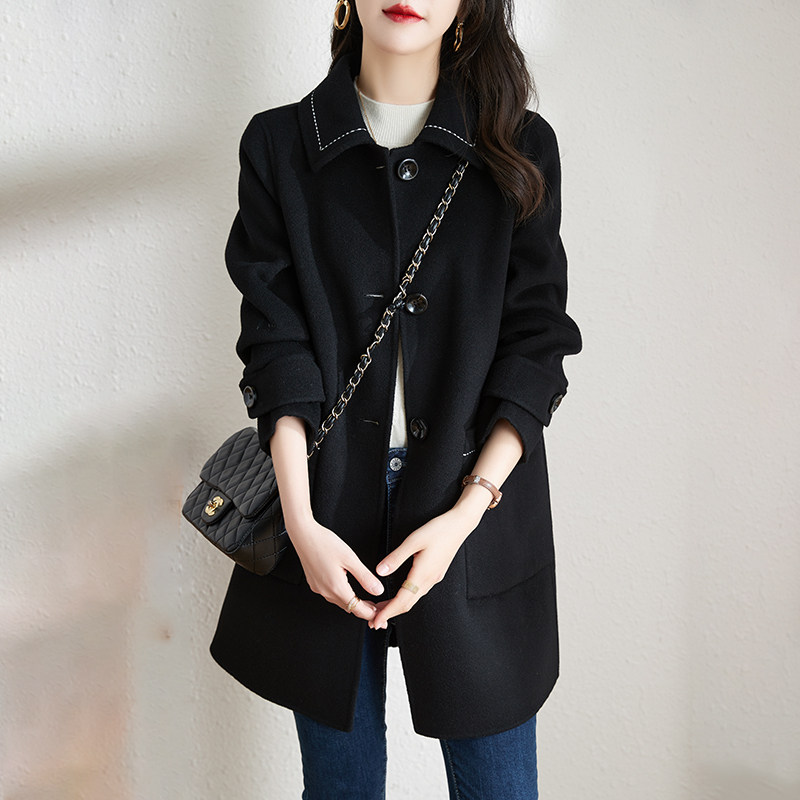小个子黑色毛呢大衣女士2025秋冬新款单排扣高级感中长款呢子外套