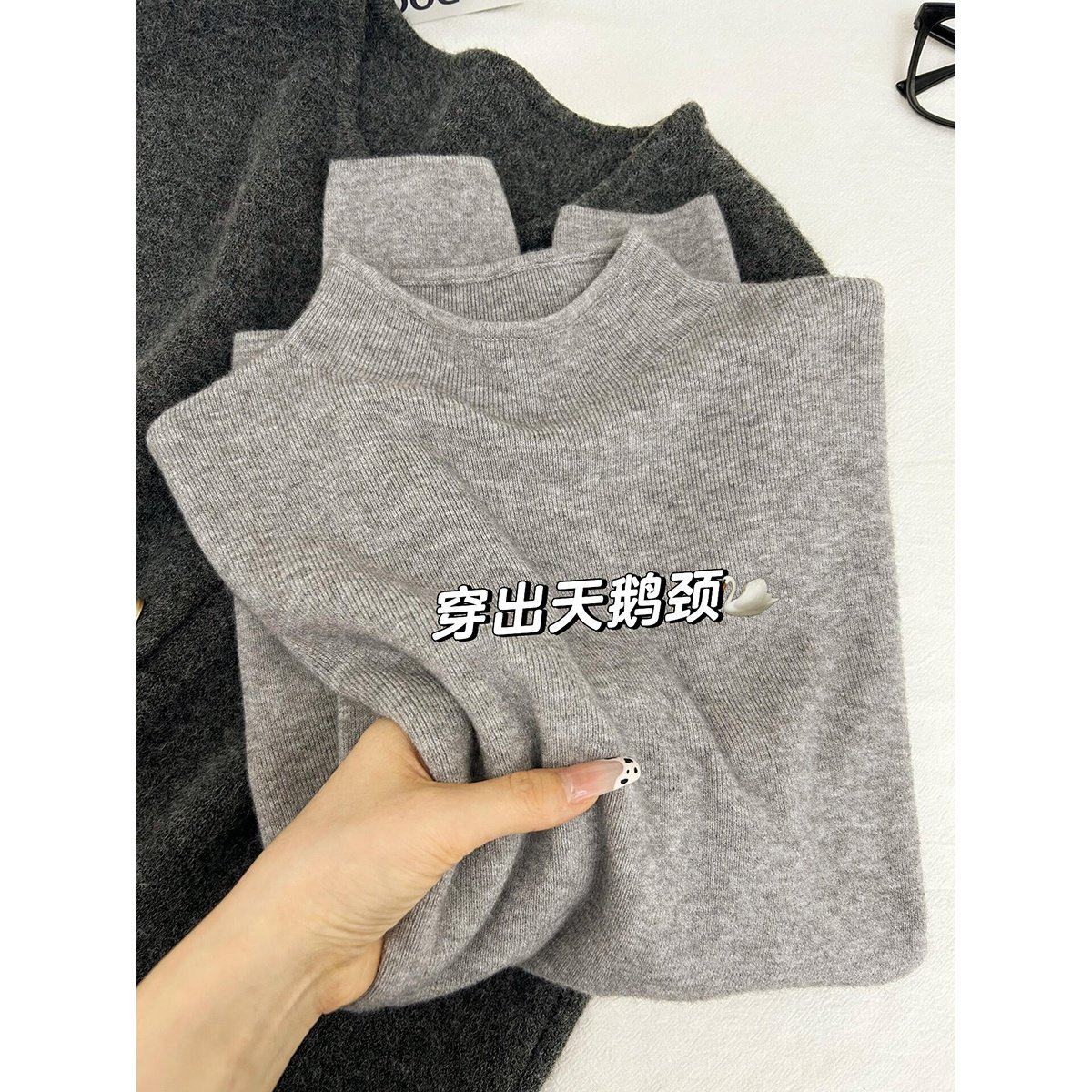 高端小资文艺复古橘色立领打底衫女秋冬内搭毛衣叠穿长袖针织上衣