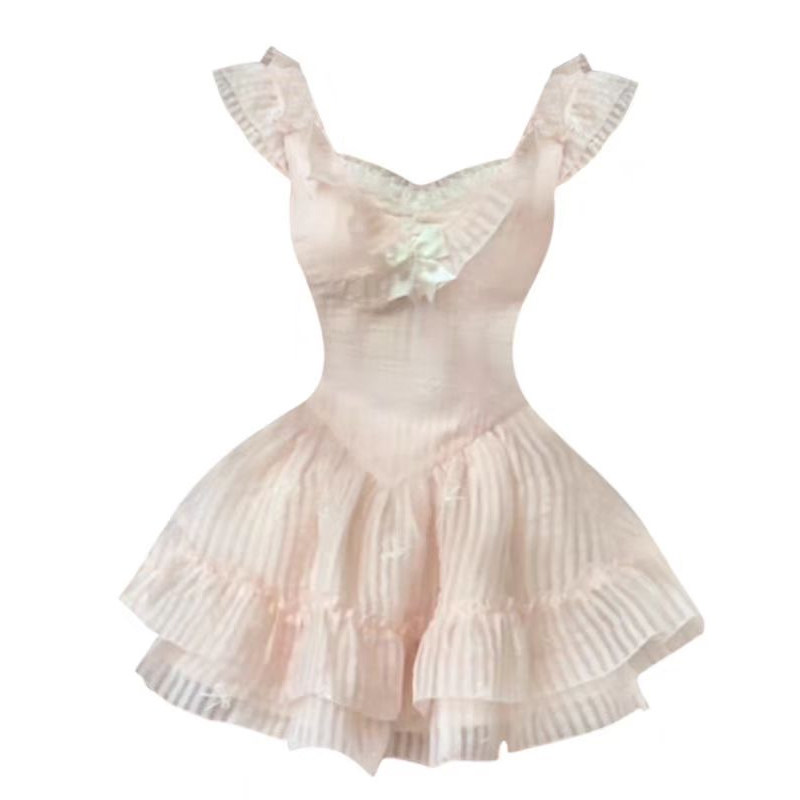纯欲甜美套装裙女夏季2025新款小个子飞飞袖连衣裙+打底裤两件套