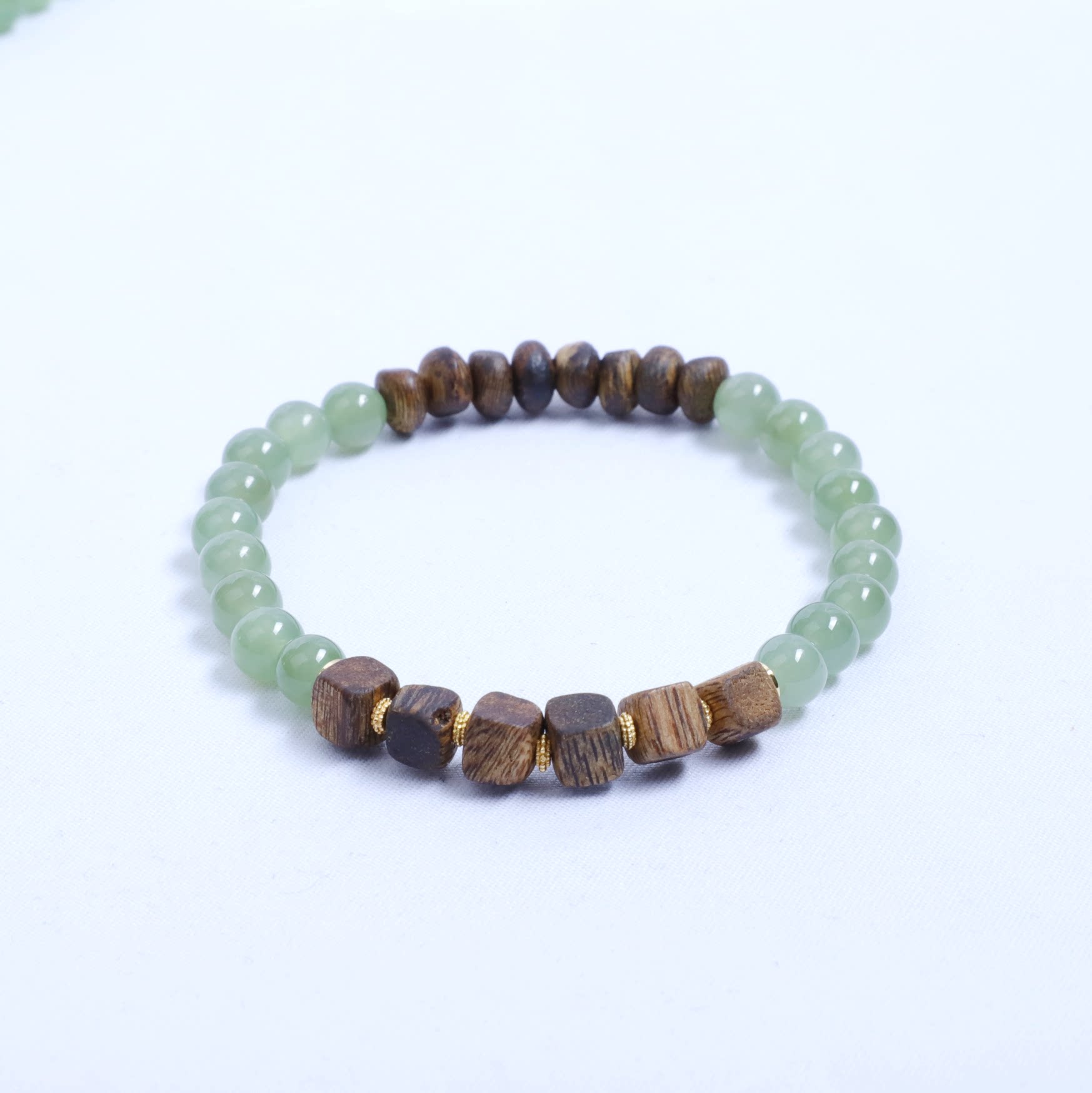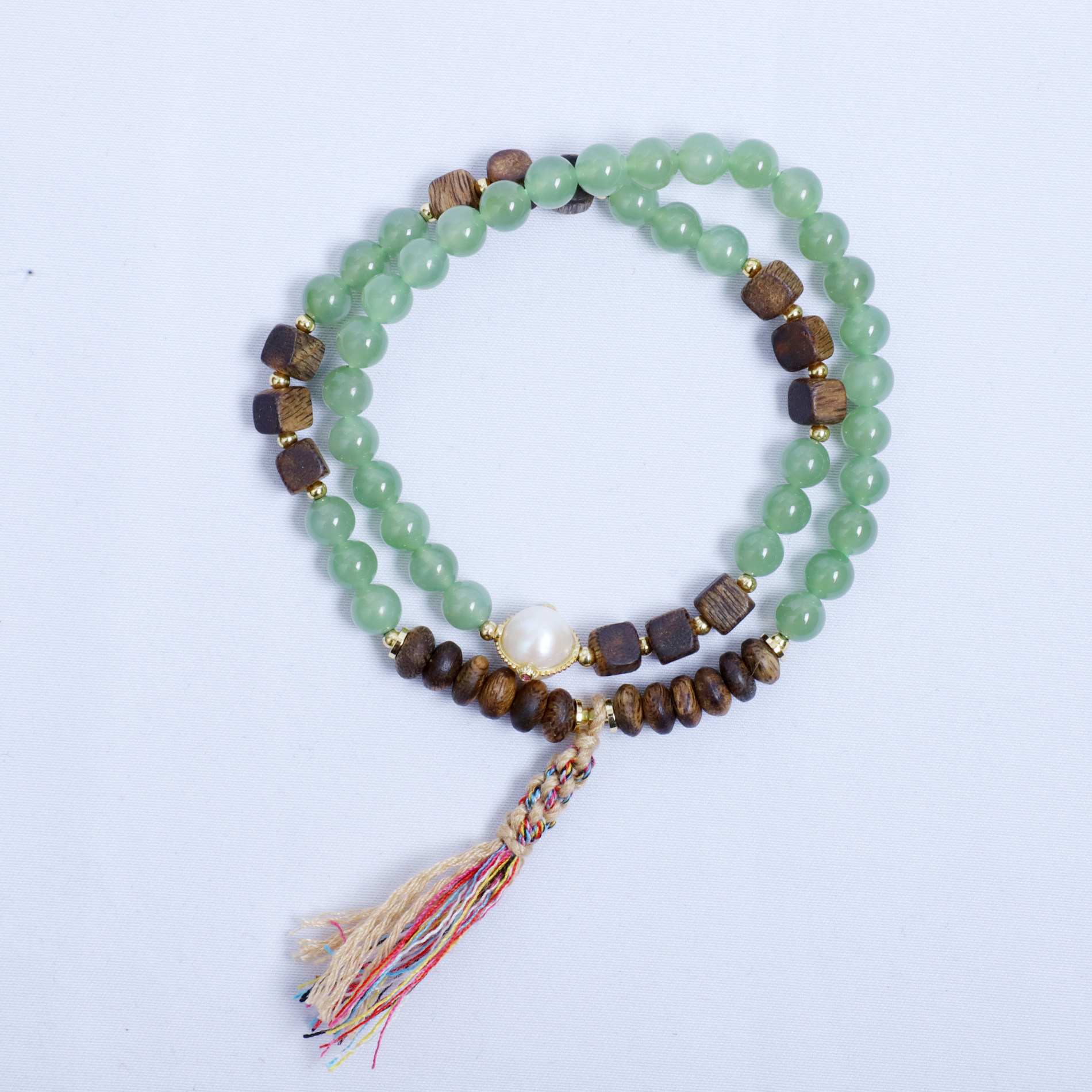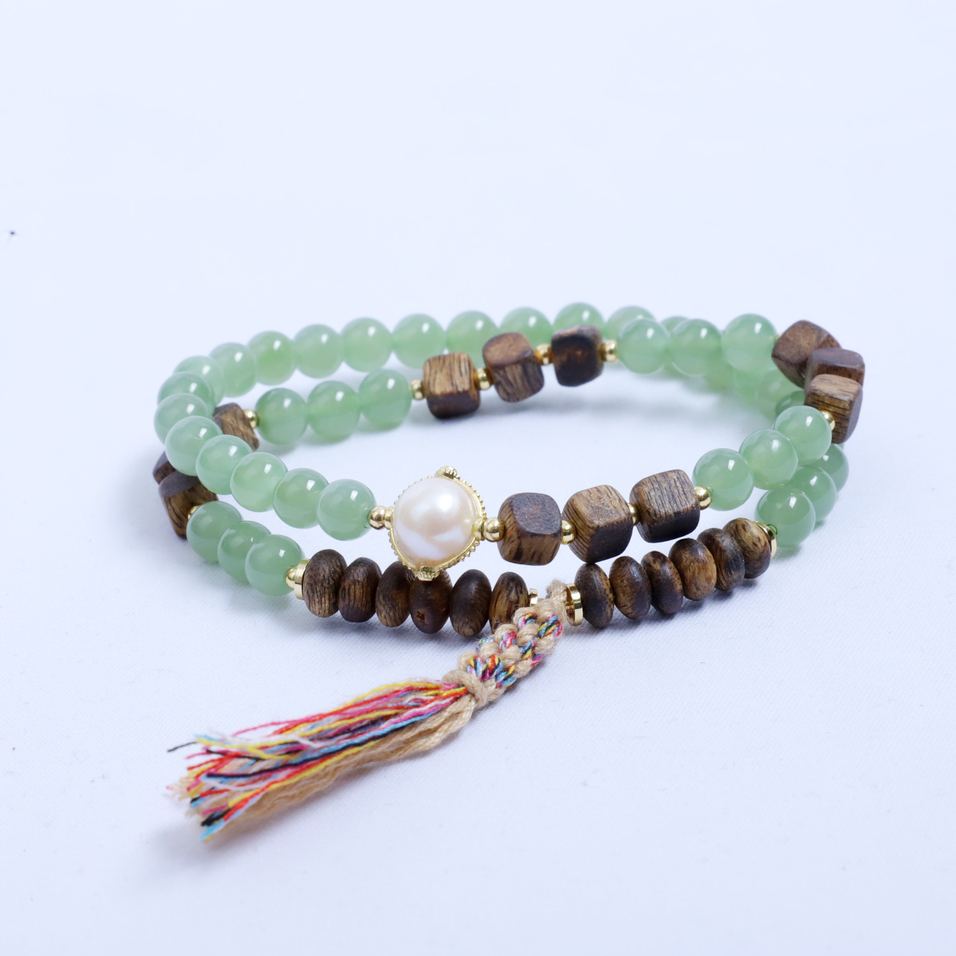 6mm碧玉双圈手链搭配奇楠沉香珍珠镶嵌纯手工手工玉米结编绳单圈