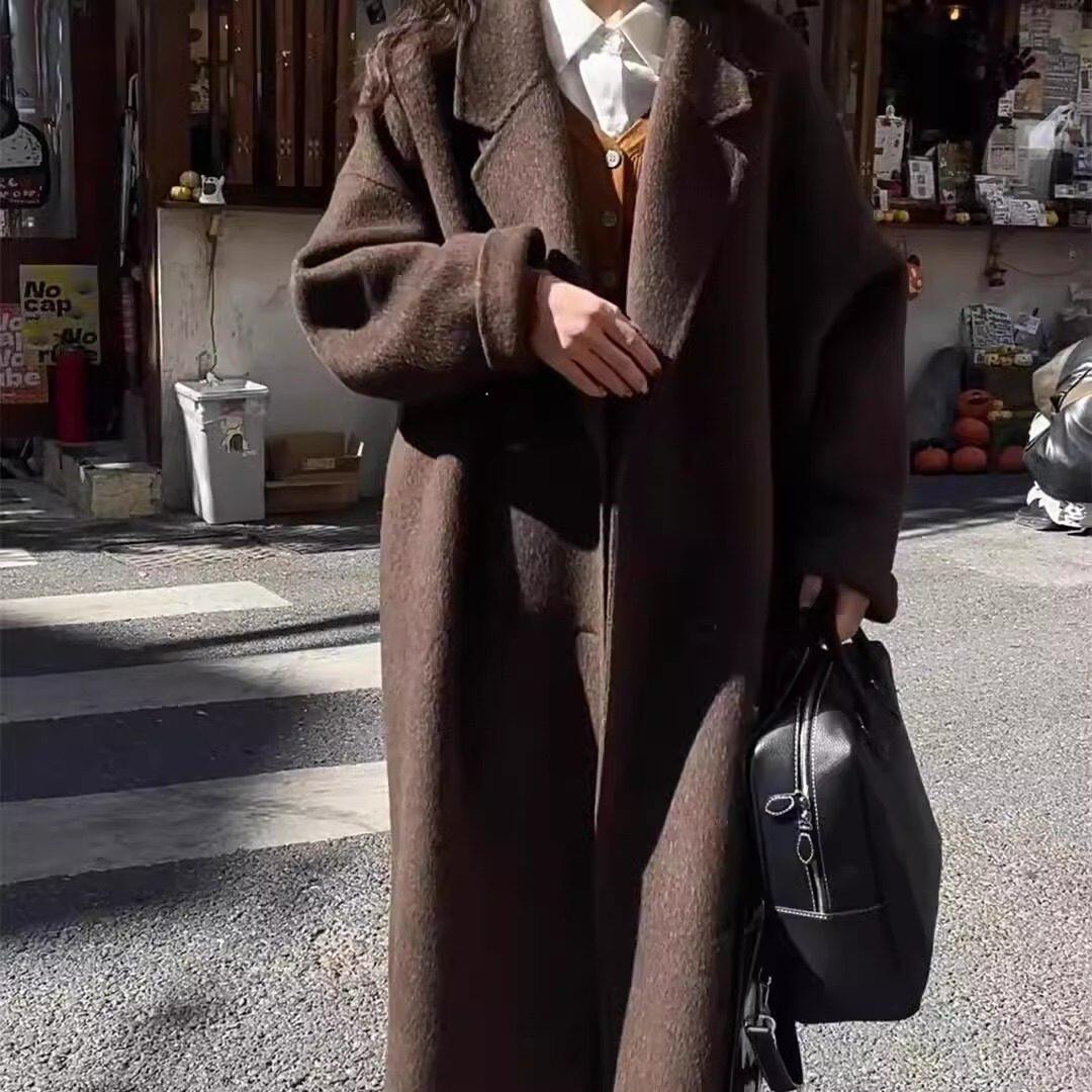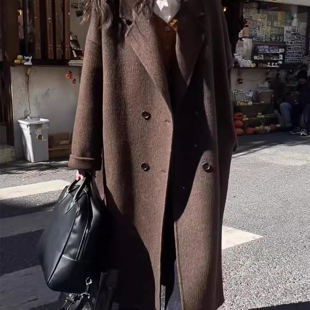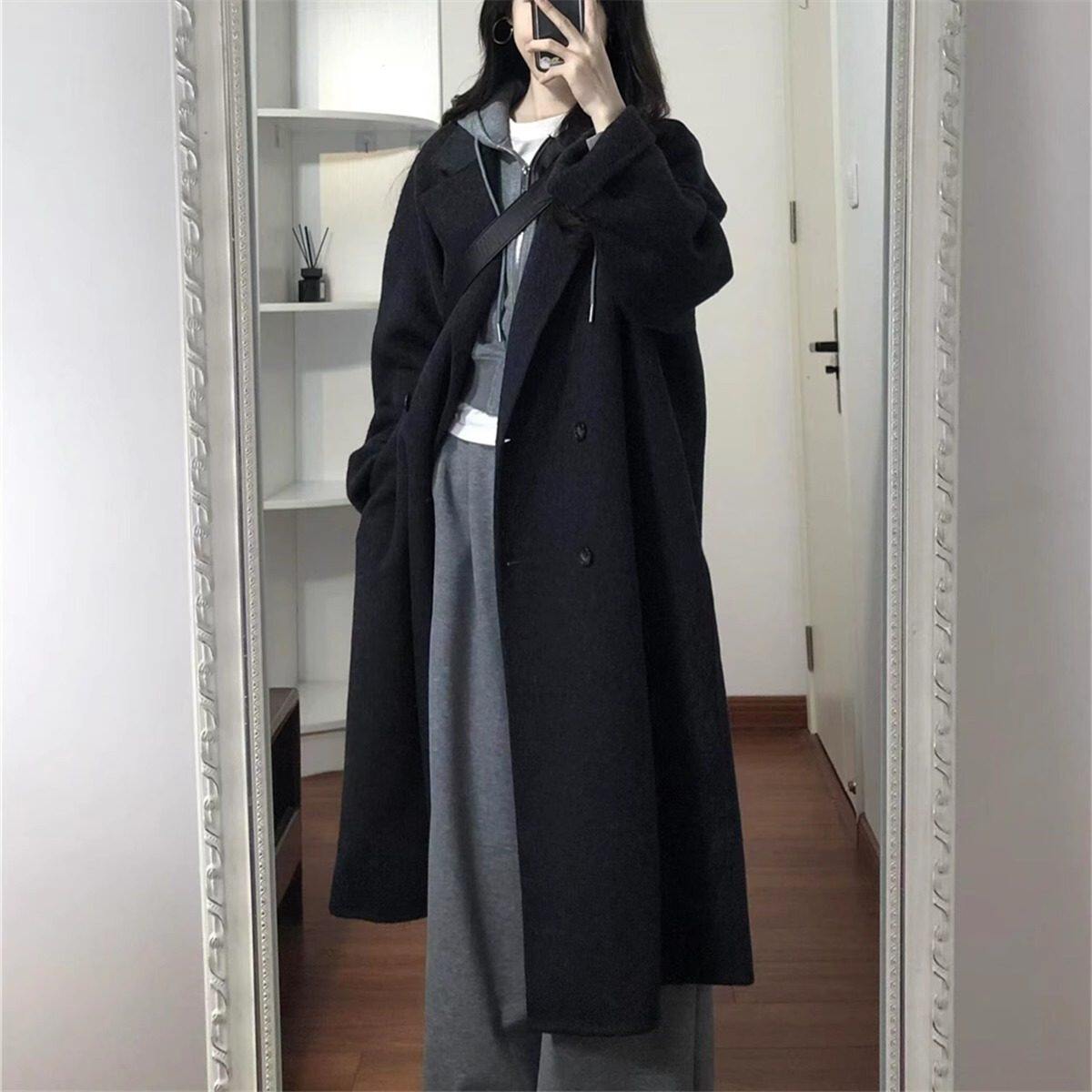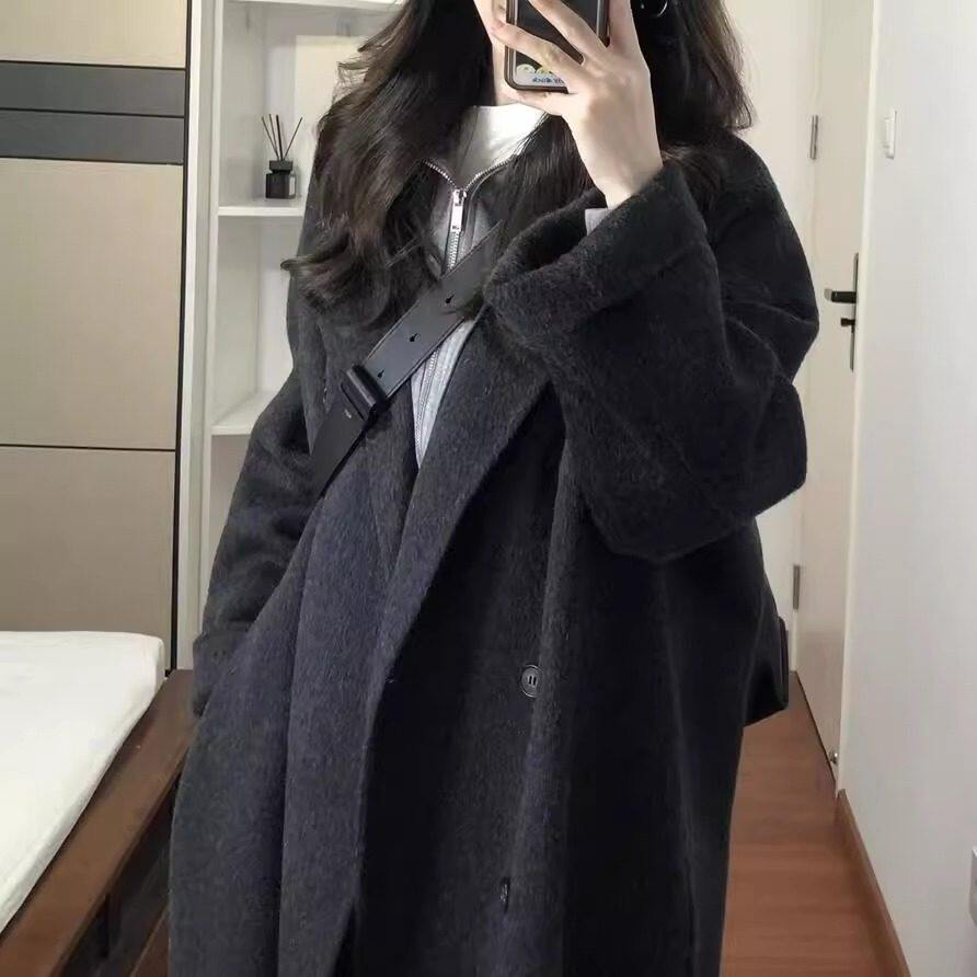 黑灰色高级感双面羊绒大衣女2025秋冬季新款韩系中长版羊毛呢外套