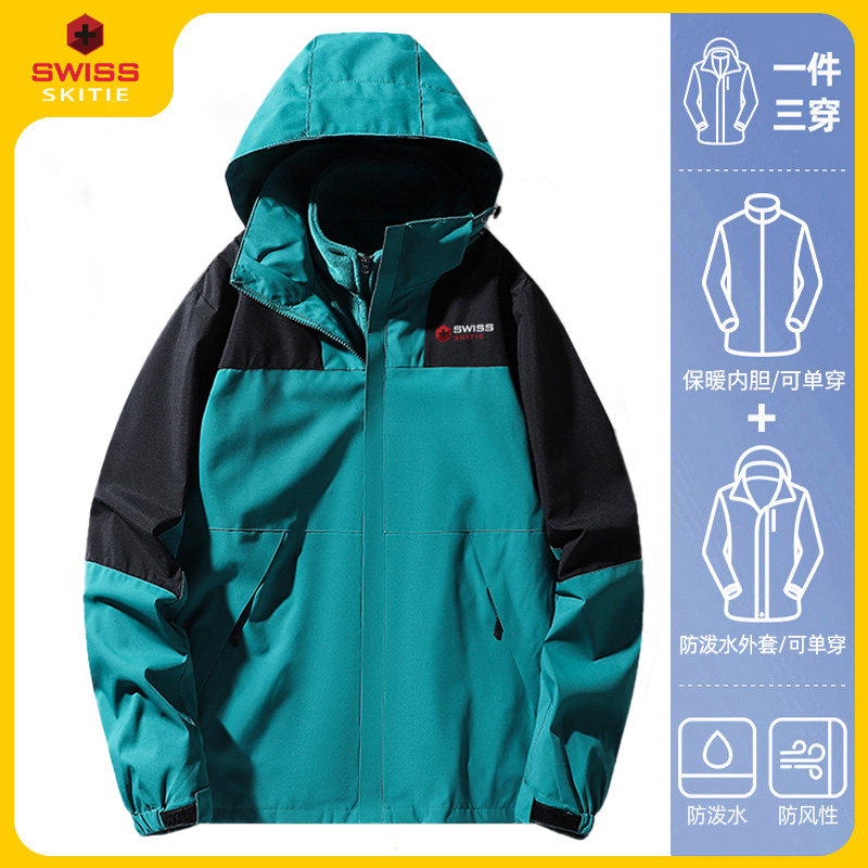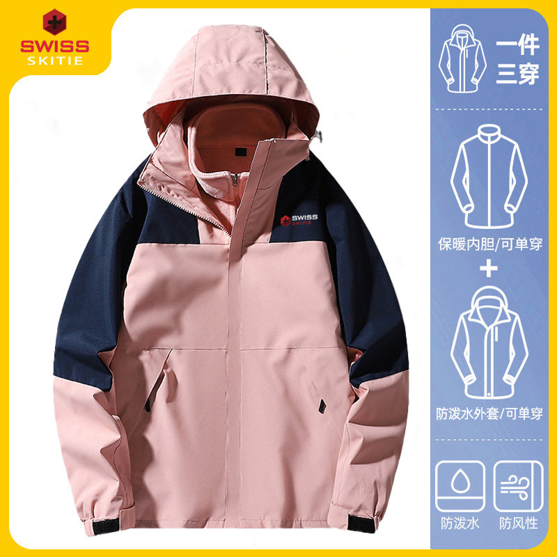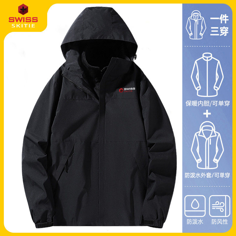 【清仓价】瑞士军工冲锋衣男女三合一可拆卸加绒加厚冬季外套潮