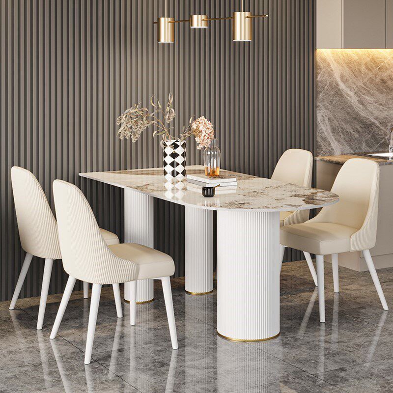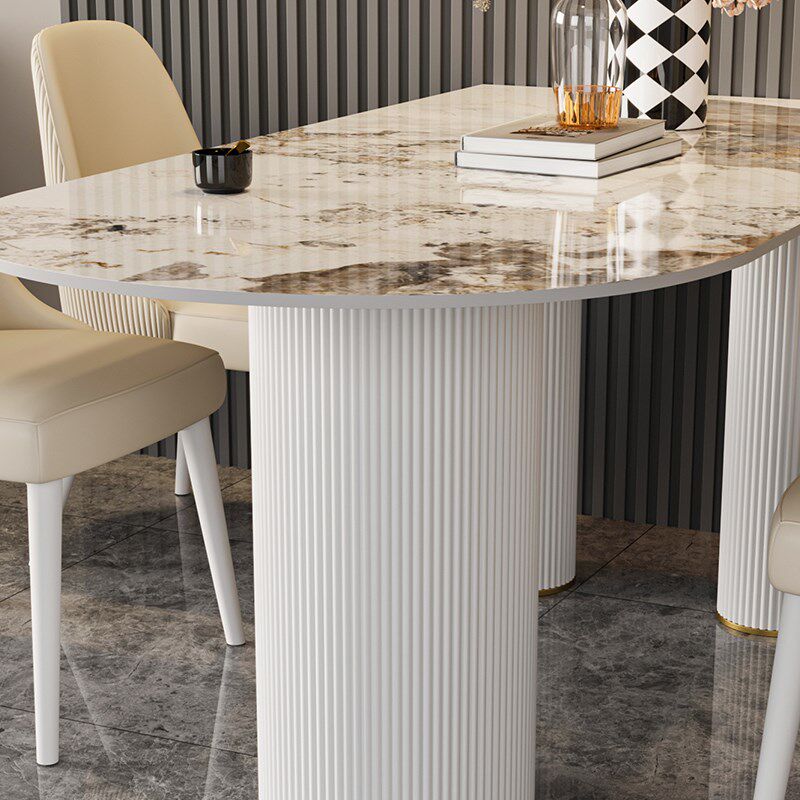 简约岩板餐桌椅组合椭圆形吃饭桌家用半圆弧小户型轻奢餐厅岛台墙